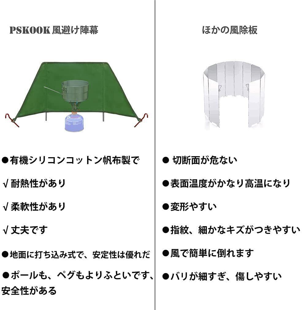 PSKOOK 焚き火陣幕 風避け キャンプ 風防 焚き火 リフレクター 炊き火シート ウインドスクリーン 焚き火シート 風防 キャンプ 帆布製 2サイズ 軽量 難燃性 コンパクト アウトドア ストーブ 防カビ バーベキューコンロ 焚火台 風よけ 目隠し 収納ケース付