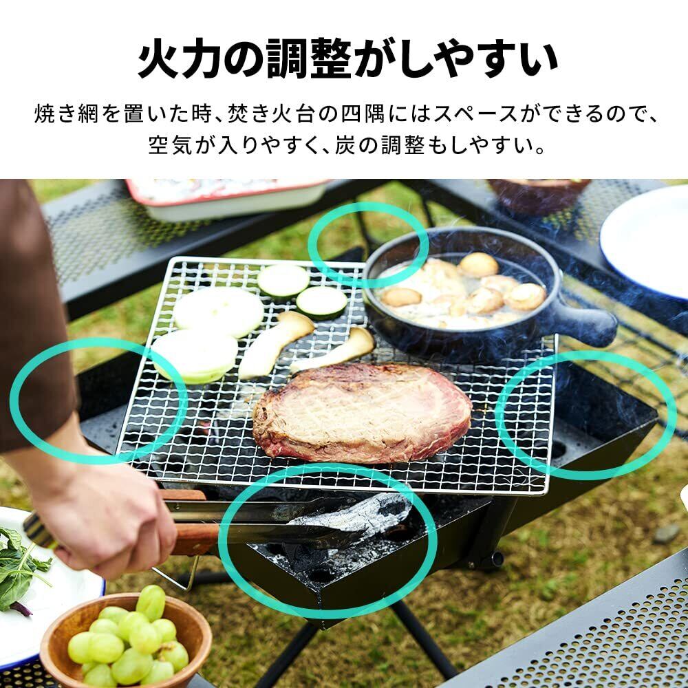 製品寸法(cm)(使用時)幅約43×奥行約43×高さ約33(収納時)幅約38×奥行約38×高さ約7(焼き網)幅約35×奥行約35(内寸)幅約32×奥行約32×高さ約6