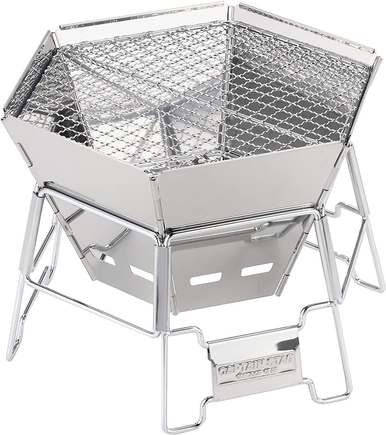 【数量限定】【 限定】 キャプテンスタッグ(CAPTAIN STAG) 焚火台 バーベキューコンロ グリル 1台2役 ヘキサステンレス ファイアグリル Mサイズ ステンレス製 収納バッグ付き UY-7020 シルバー 4人用 | paghag