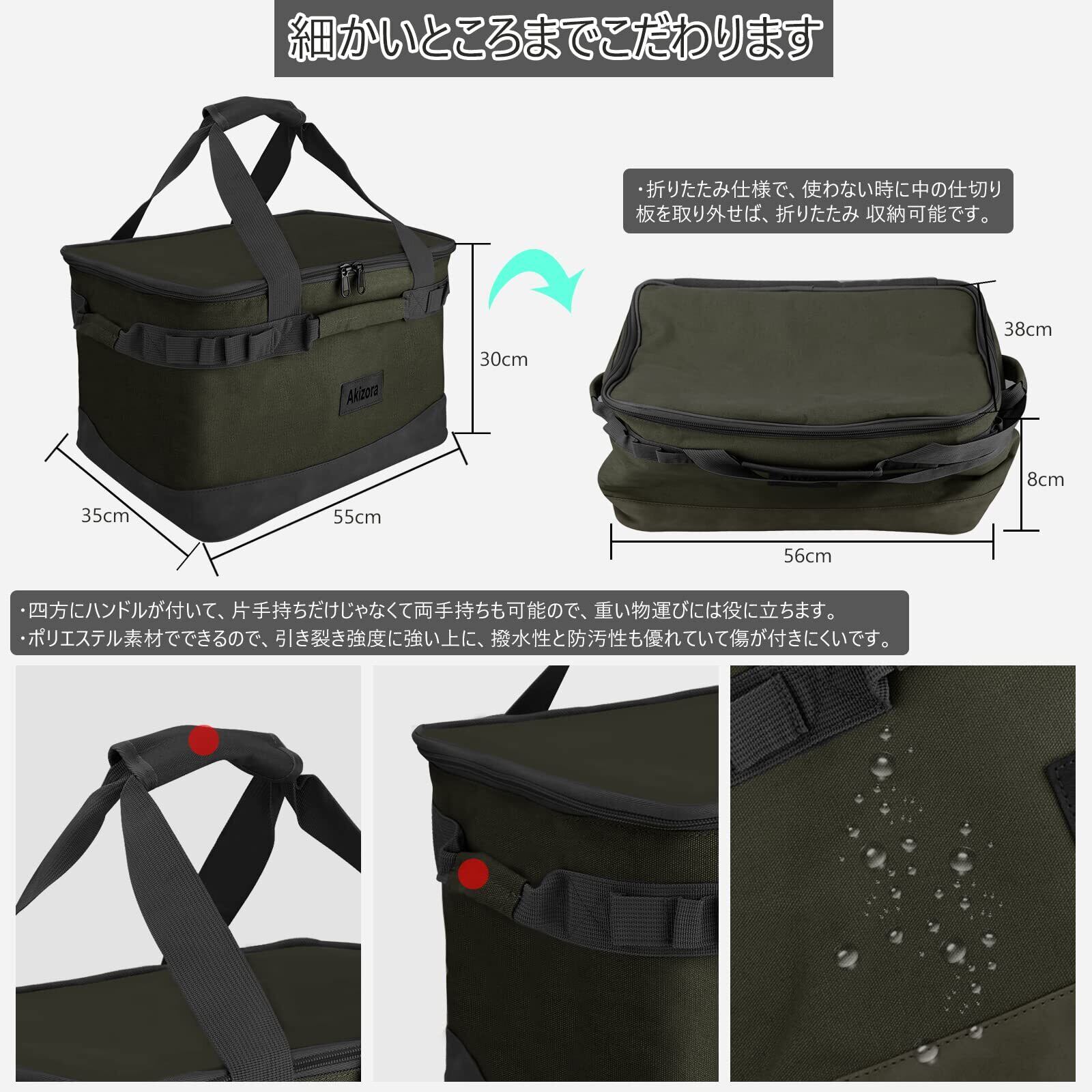 Akizora キャンプ 収納ボックス アウトドア トートバッグ 大容量 コンテナボックス 焚き火台 薪ストーブ 七輪 キャンプ道具収納に最適 55×35×30cm