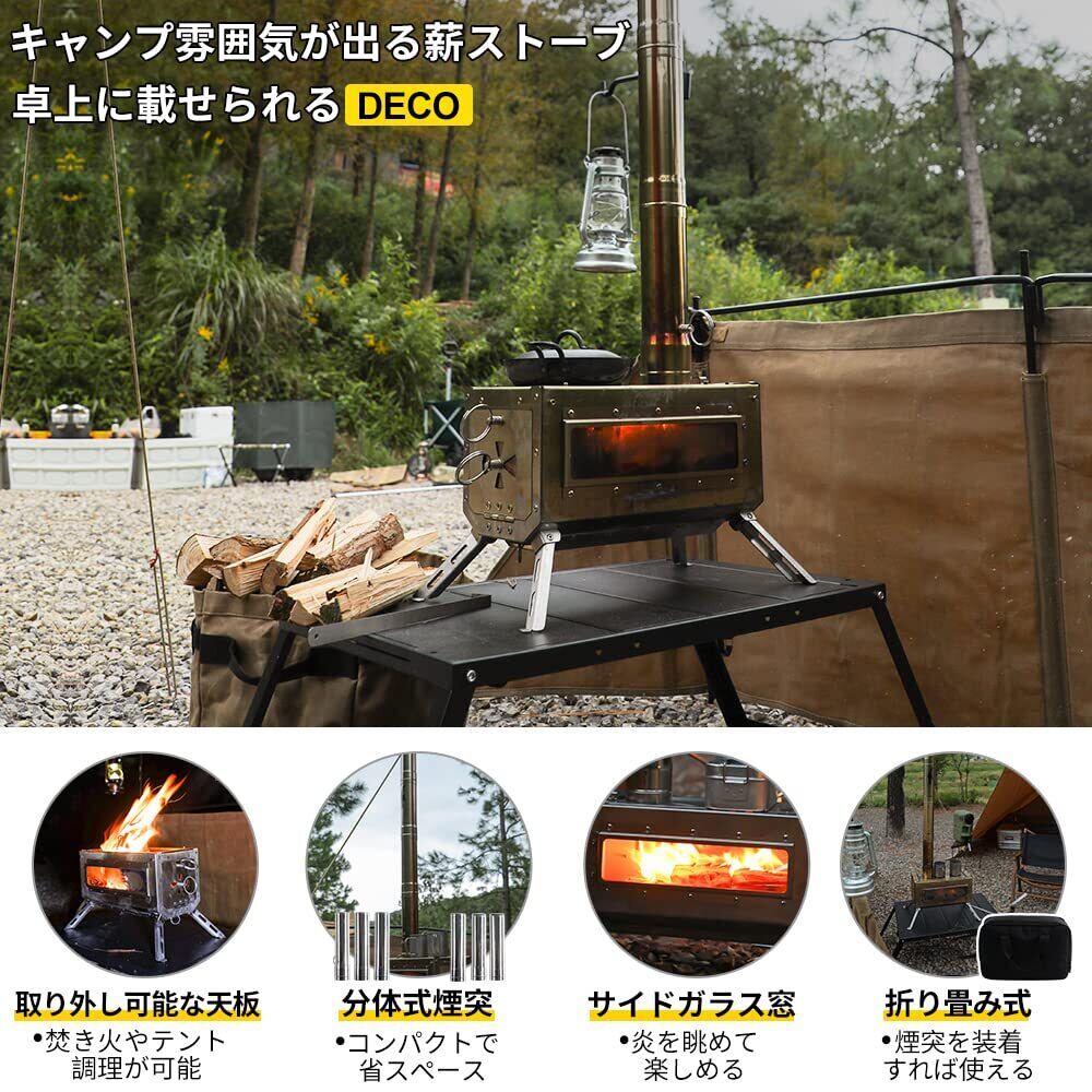 Soomloom卓上薪ストーブDECO テーブル暖炉 バーベキューBBQ焚き火台コンロ 煙突 テント調理 ステンレス鋼 折りたたみ アウトドア・キャンプヒーター・ウォーマー多用途