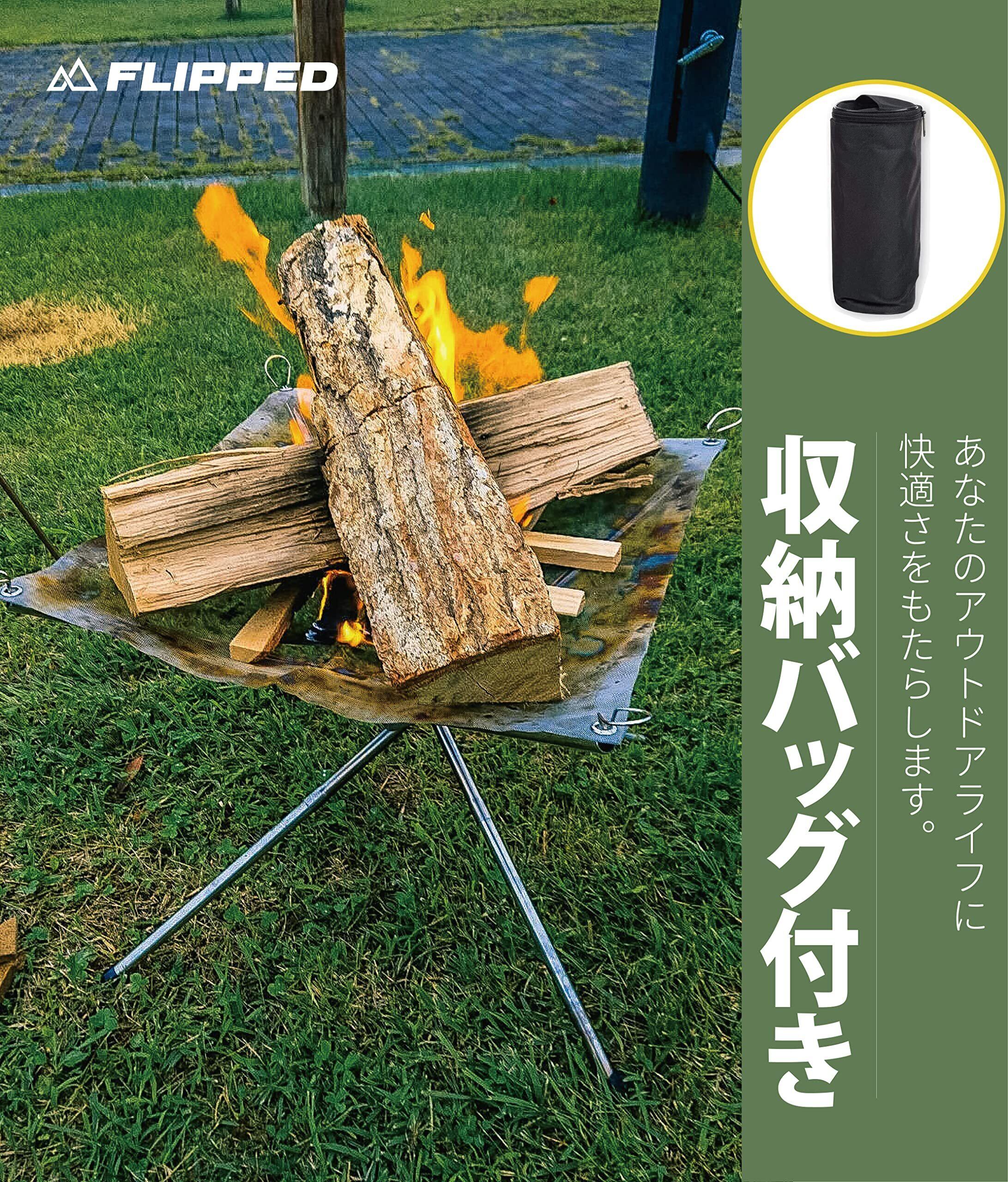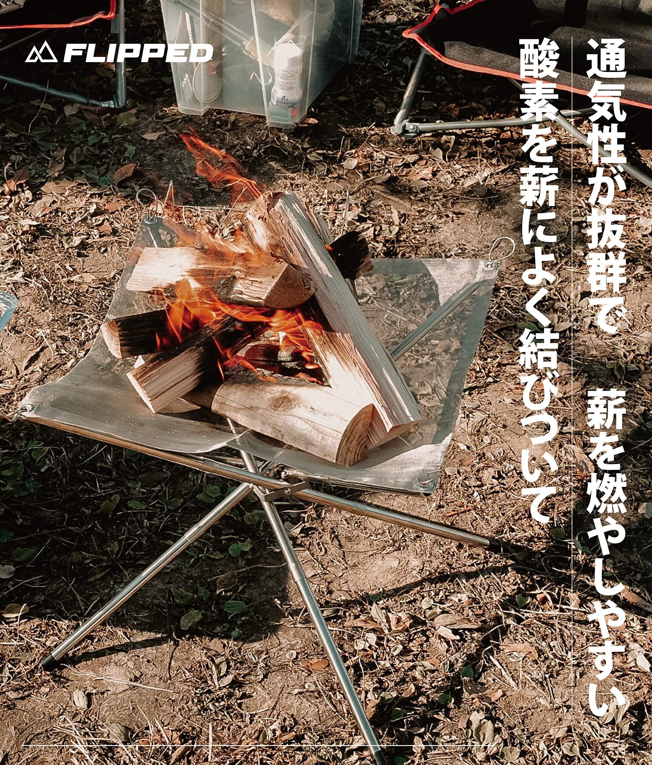【数量限定】FLIPPED 焚き火台 メッシュ 付き 折りたたみ式 焚き火スタンド アウトドア ファイアスタンド キャンプ バーベキュー焚火台 コンパクト 携帯便利 収納 ケース付 (コガタ)