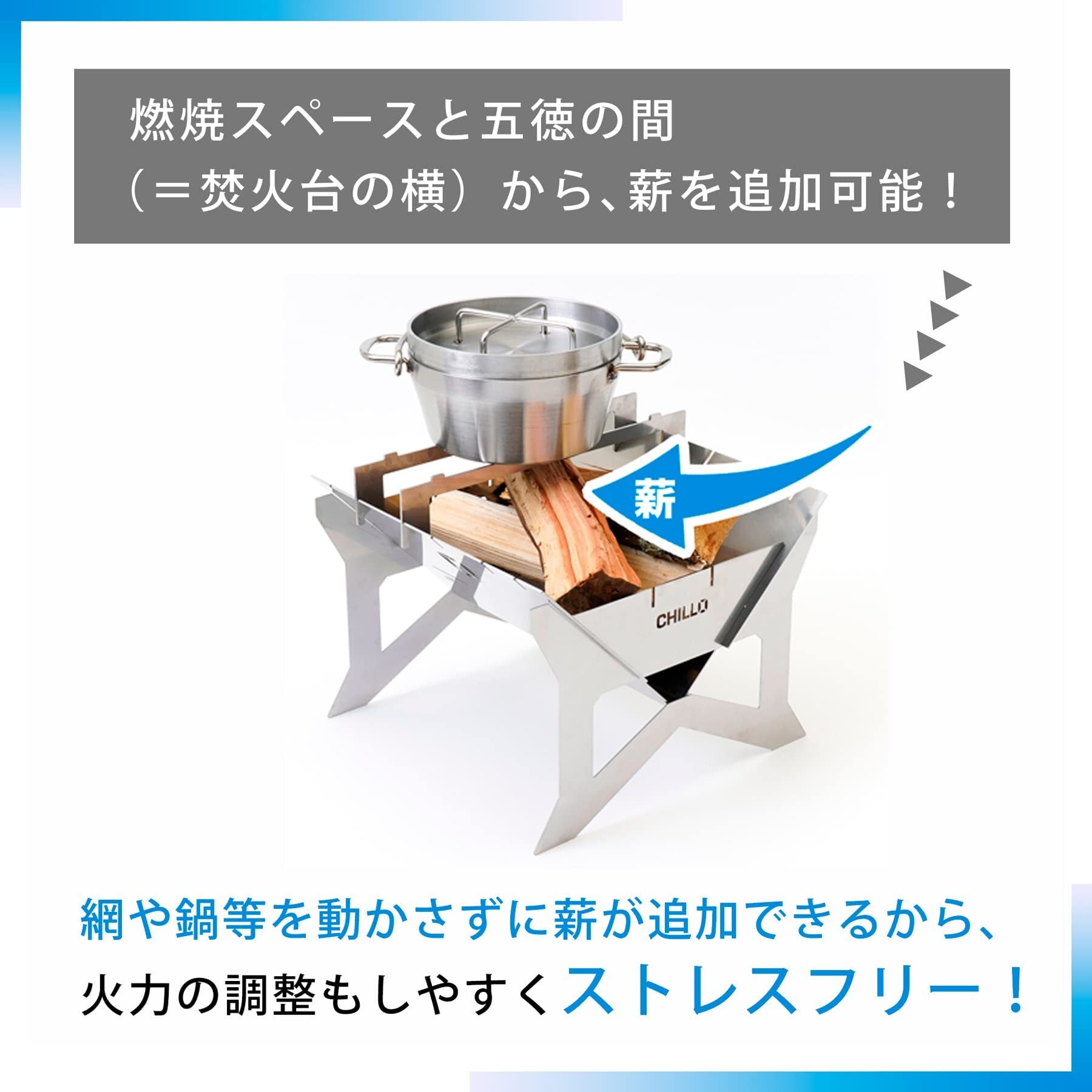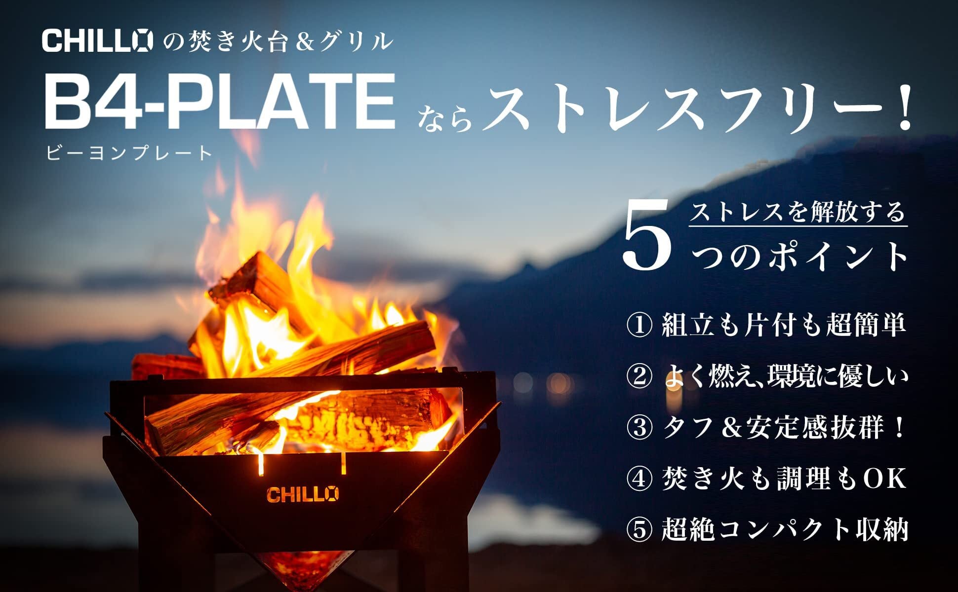 CHILLO(チロ) 焚き火台 [B4-PLATE] スターターセット 2-4人用 ステンレス 五徳付き 収納バッグ付