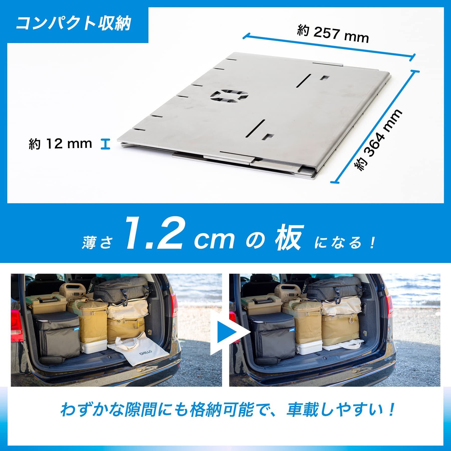 【こんな方向き】B4-PLATEは驚くほどコンパクトに収納できますが、通常よりかなり厚めのステンレス材を贅沢に採用していて、それなりの重量があります。 その分、頑丈で安定感があり、思う存分焚き火をしたり、ストレスなく料理も楽しめるガチで本格派の焚き火台です。ガンガン焚き火や料理を楽しめる本格的な焚き火台を使いたいけど、車載スペースに限度があり、大きな焚き火台は載せられない。。そんなオートキャンパーさんに是非使っていただきたいアイテムです。