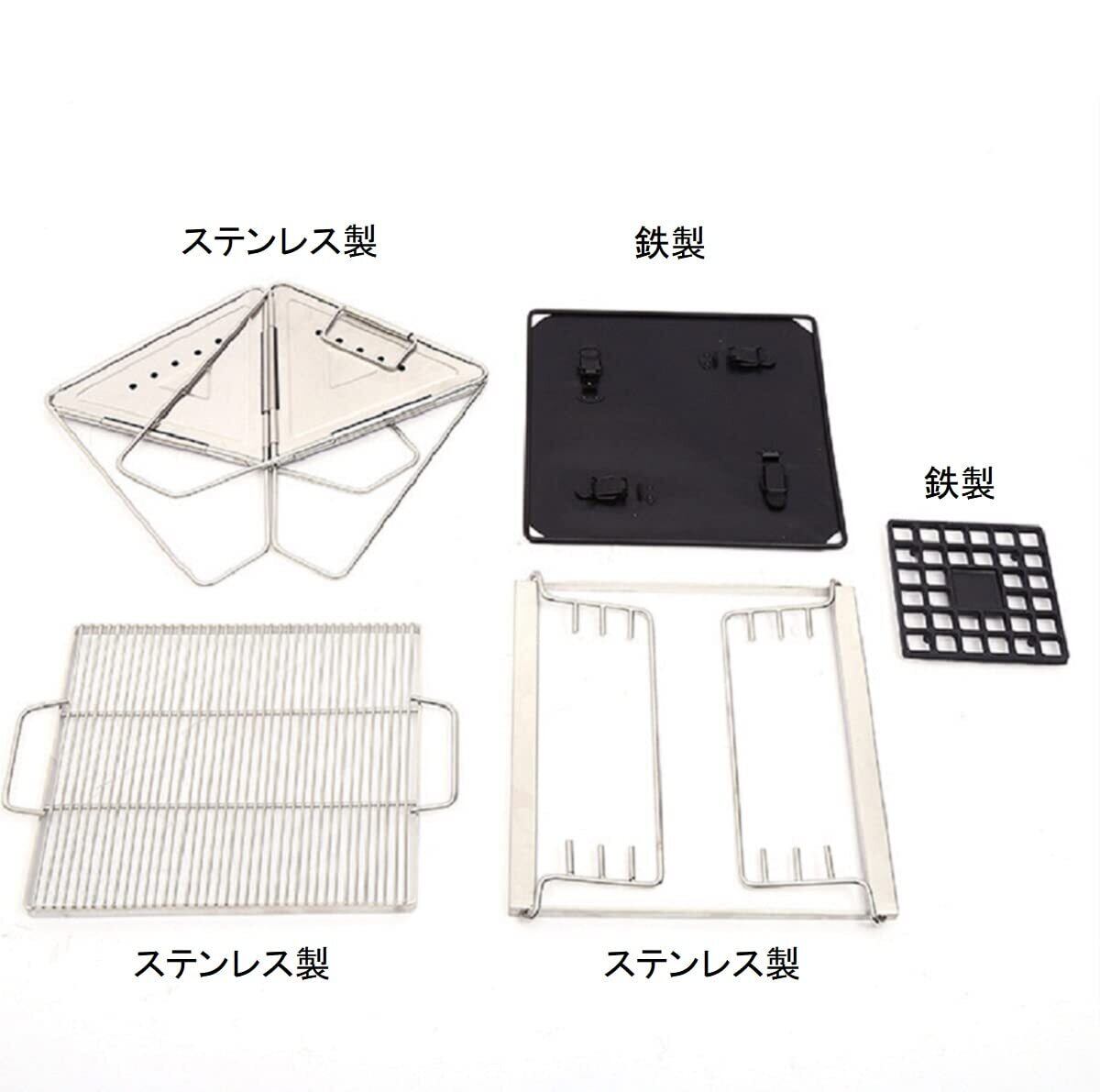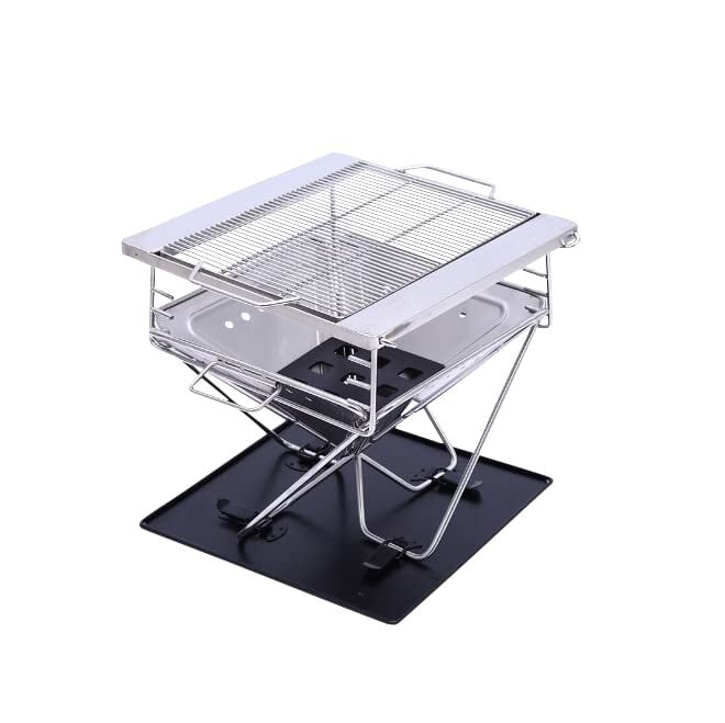 簡単に折りたたみでき軽量でコンパクトな多機能グリル、折りたたんで収納バッグに収納できます。 キャンプやBBQにとても便利です。 高品質のステンレス鋼で支えられており、優れた耐荷重性と錆びや変形しにくい安心設計 ストーブとして、焚き火台として使用することもできます。