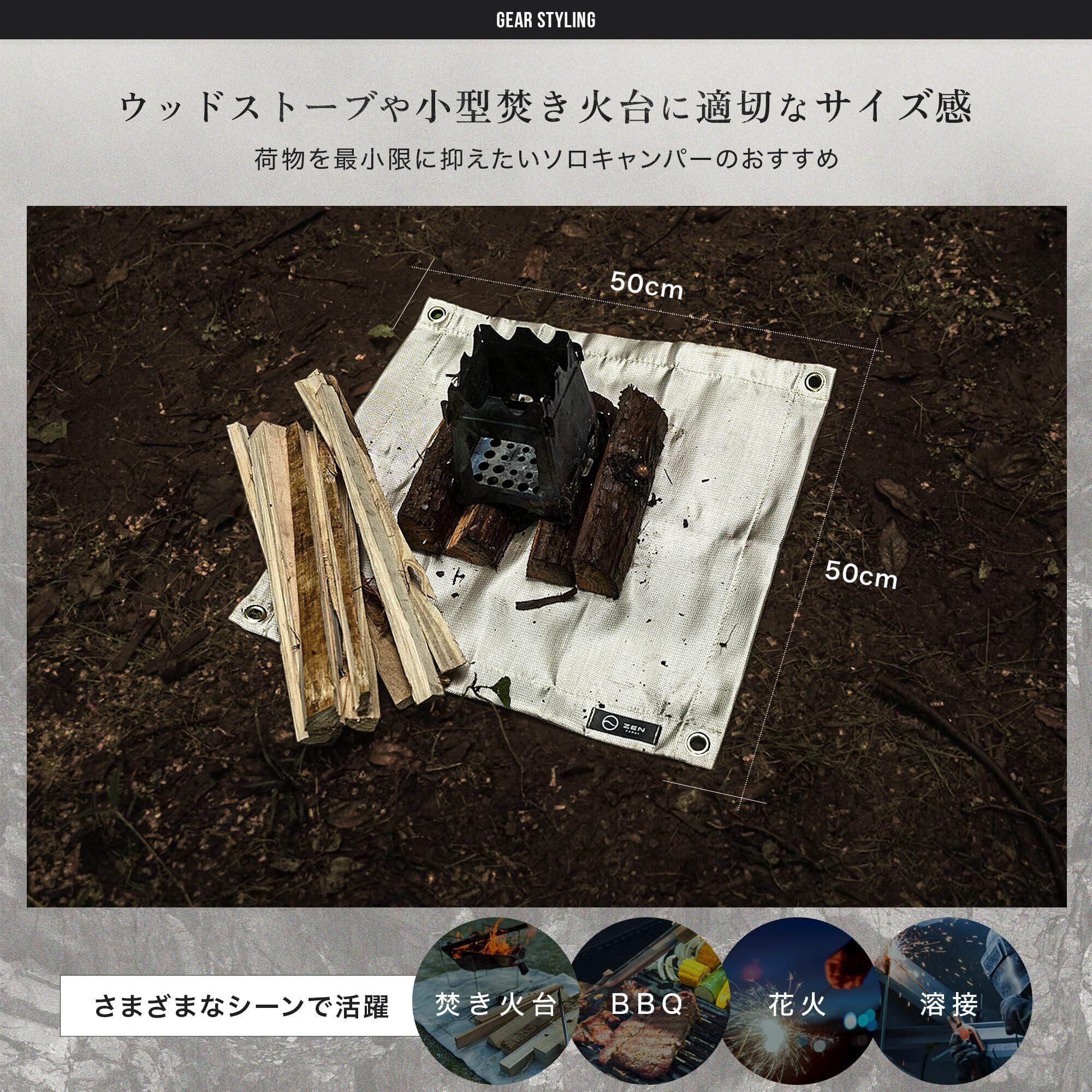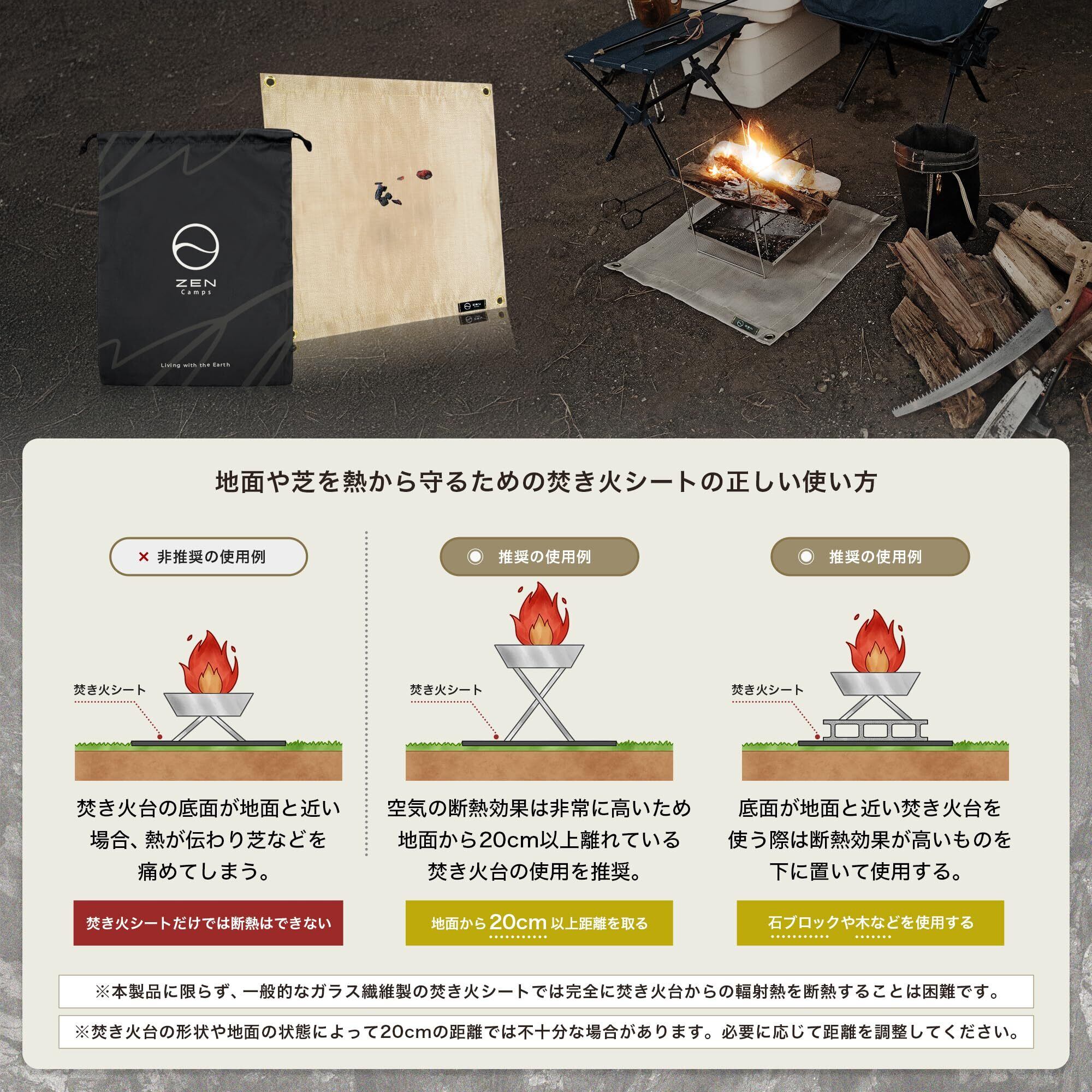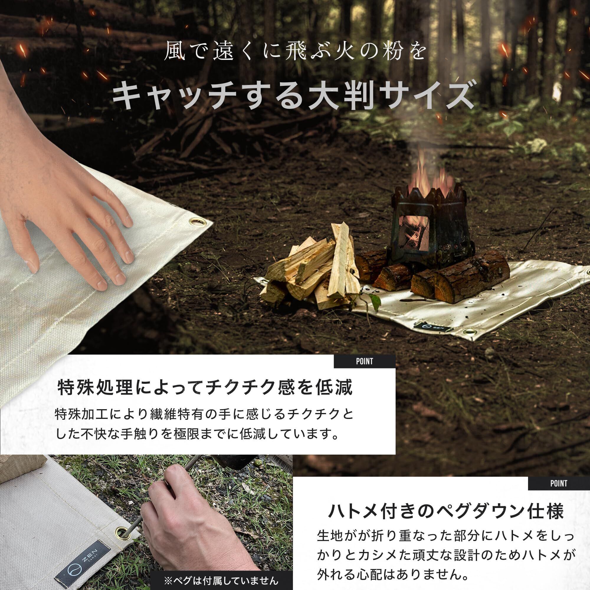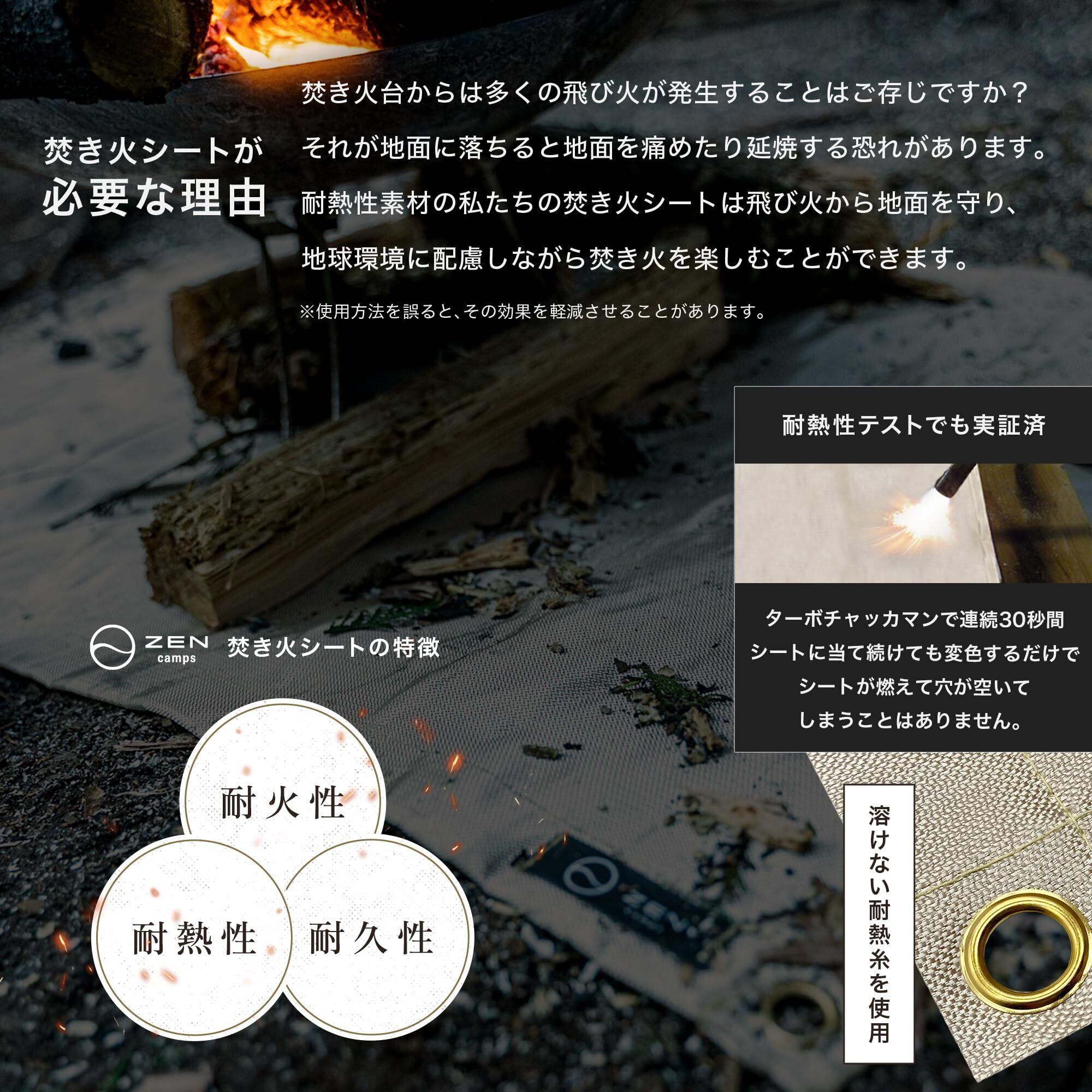 ZEN Camps 焚き火シート 焚き火台シート スパッタシート 防炎 防火 耐火 耐熱 シート キャンプ BBQ 芝生保護【日本ブランド】