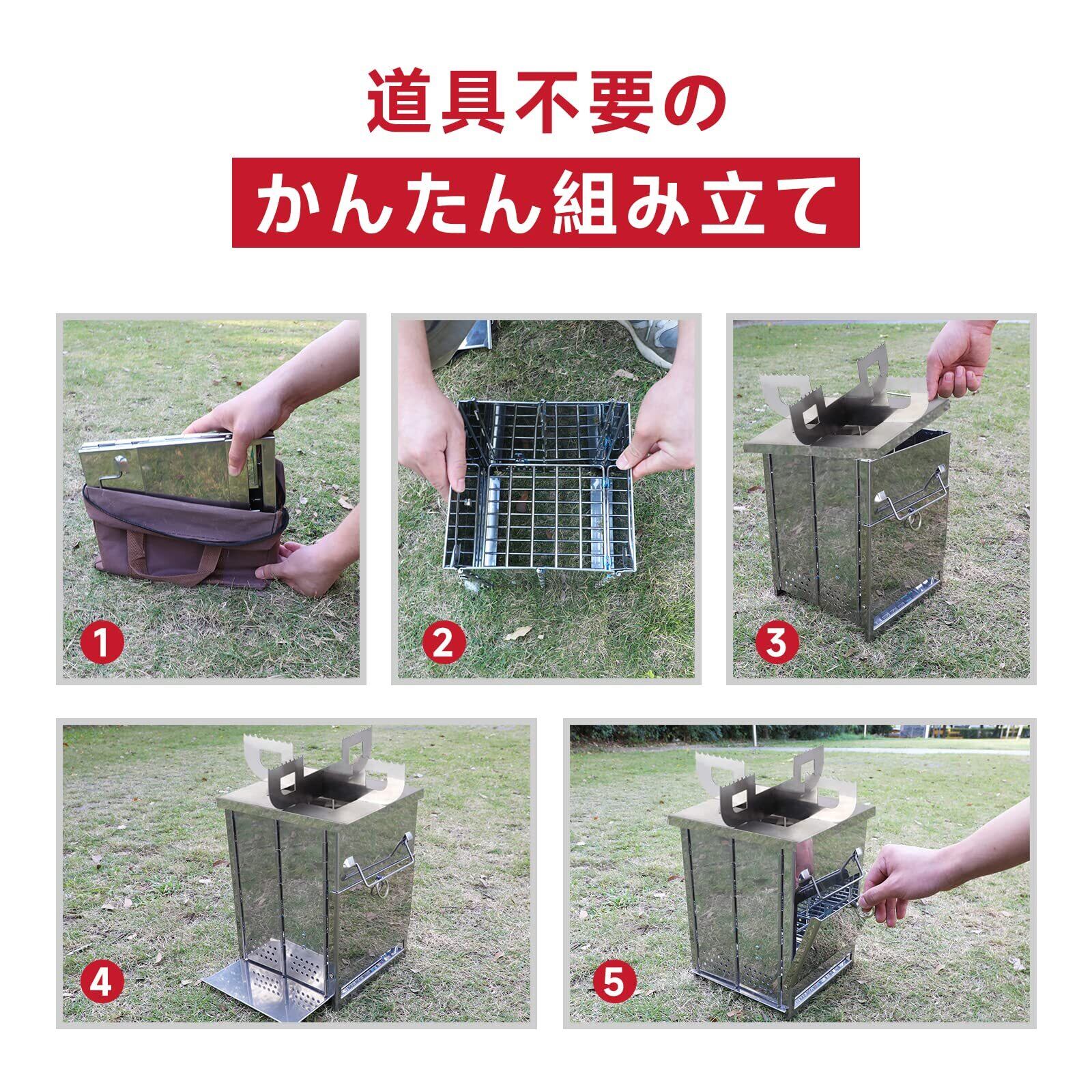 KOMCLUB ポータブル薪ストーブ 焚き火台 ソロ (ベース+スタンド付) ステンレス 折りたたみ バーベキューコンロ 焚火台 コンパクト 軽量 キャンプ BBQコンロ 1台多役 収納ケース付き