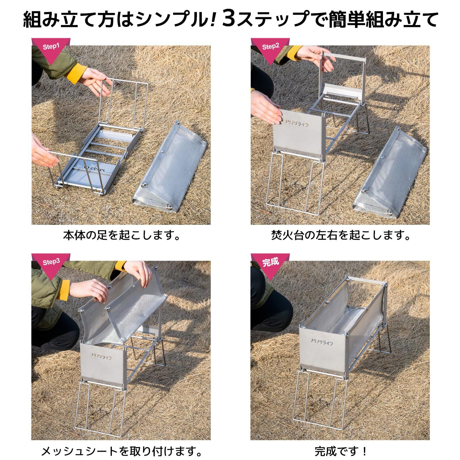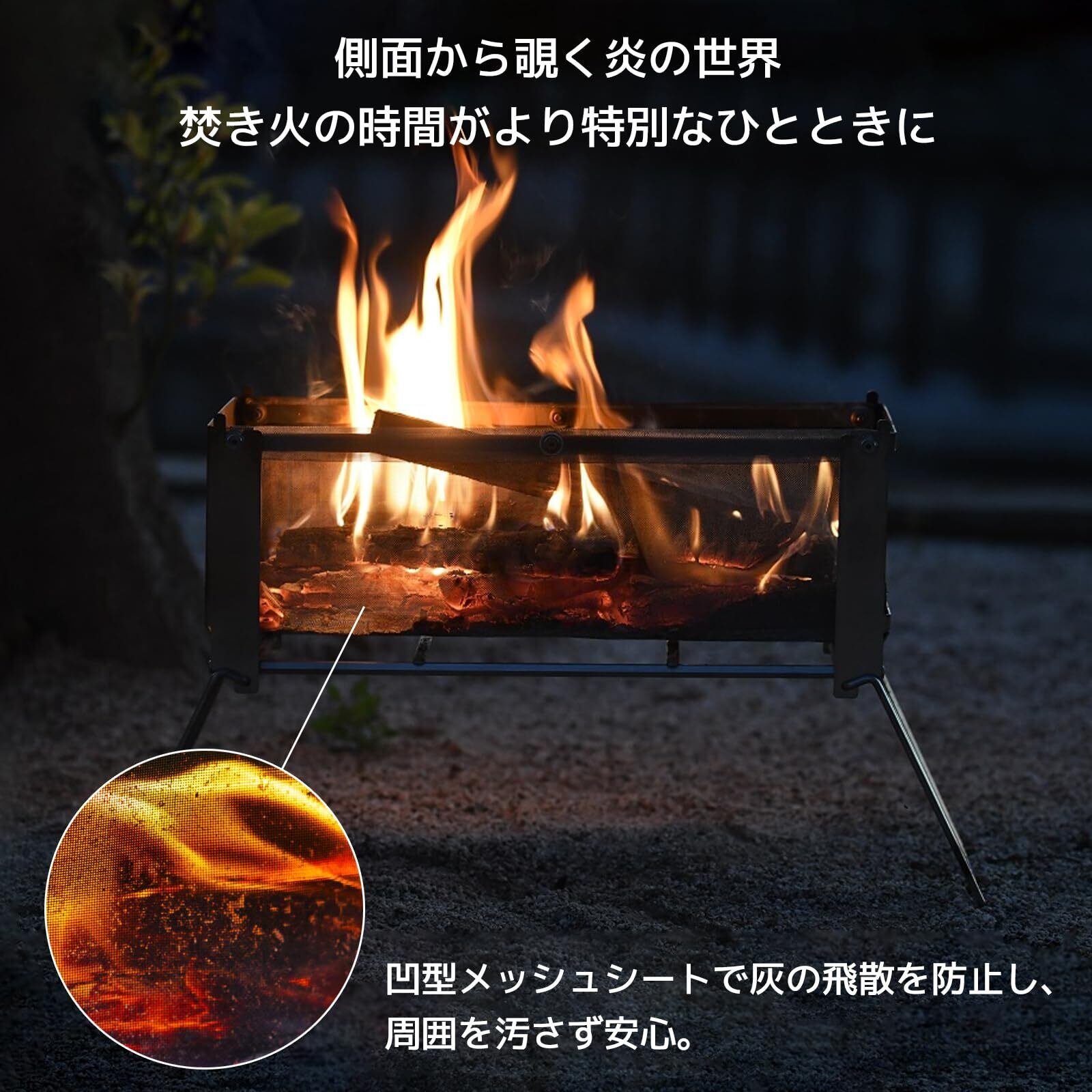 ノリノリライフ ヨコナガメッシュタキビダイ 横から炎が見える 焚き火台 メッシュ キャンプ コンパクト ソロにも 軽量 火加減調節