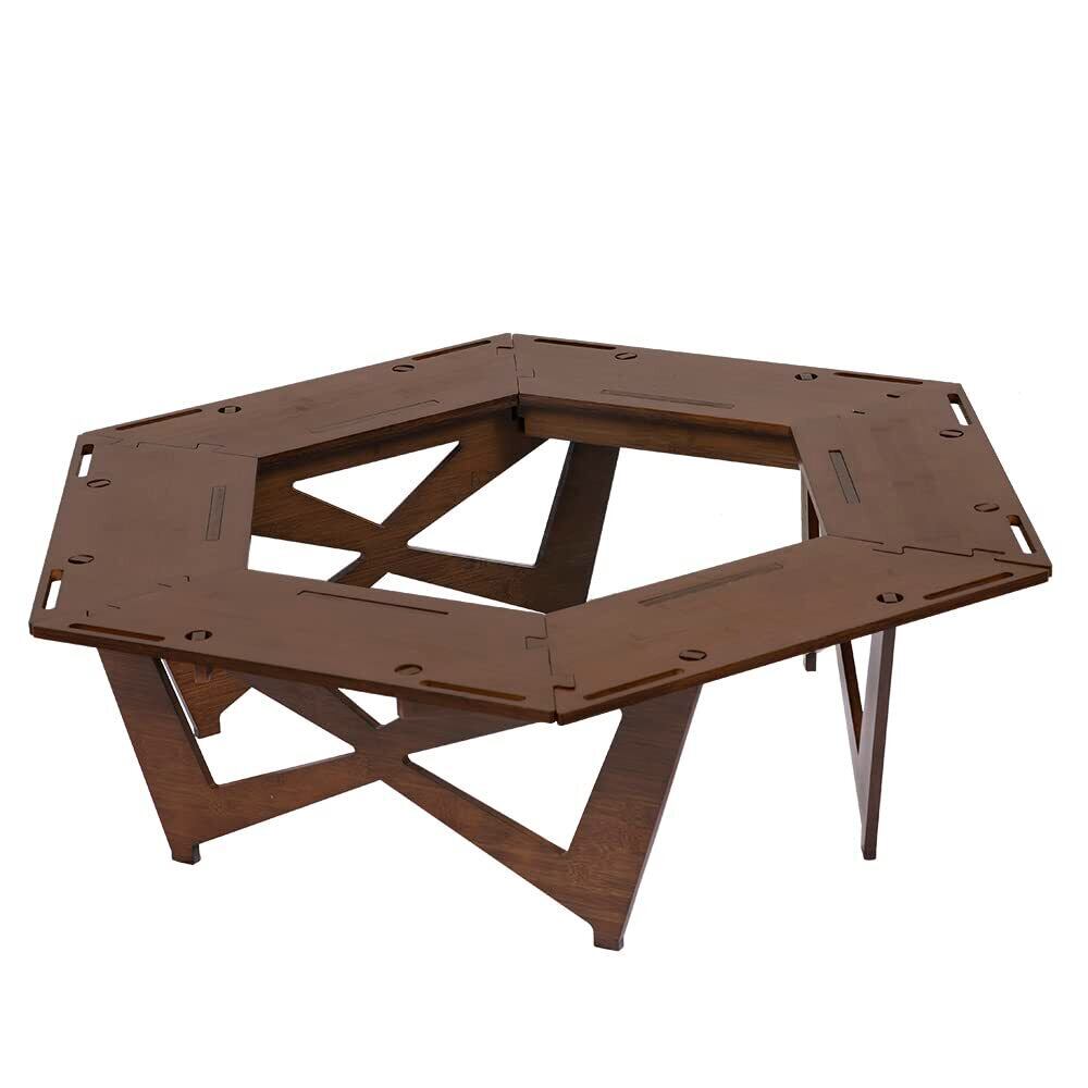 ヘキサゴンテーブル ブラウン ヘキサテーブル 囲炉裏テーブル 焚き火テーブル 焚火テーブル キャンプテーブル ウッドテーブル 六角テーブル 焚火 焚き火 ヘキサ 囲炉裏 BBQ バーベキュー ストーブ 薪 冬キャンプ 灯油ストーブ 薪ストーブ 焚火台