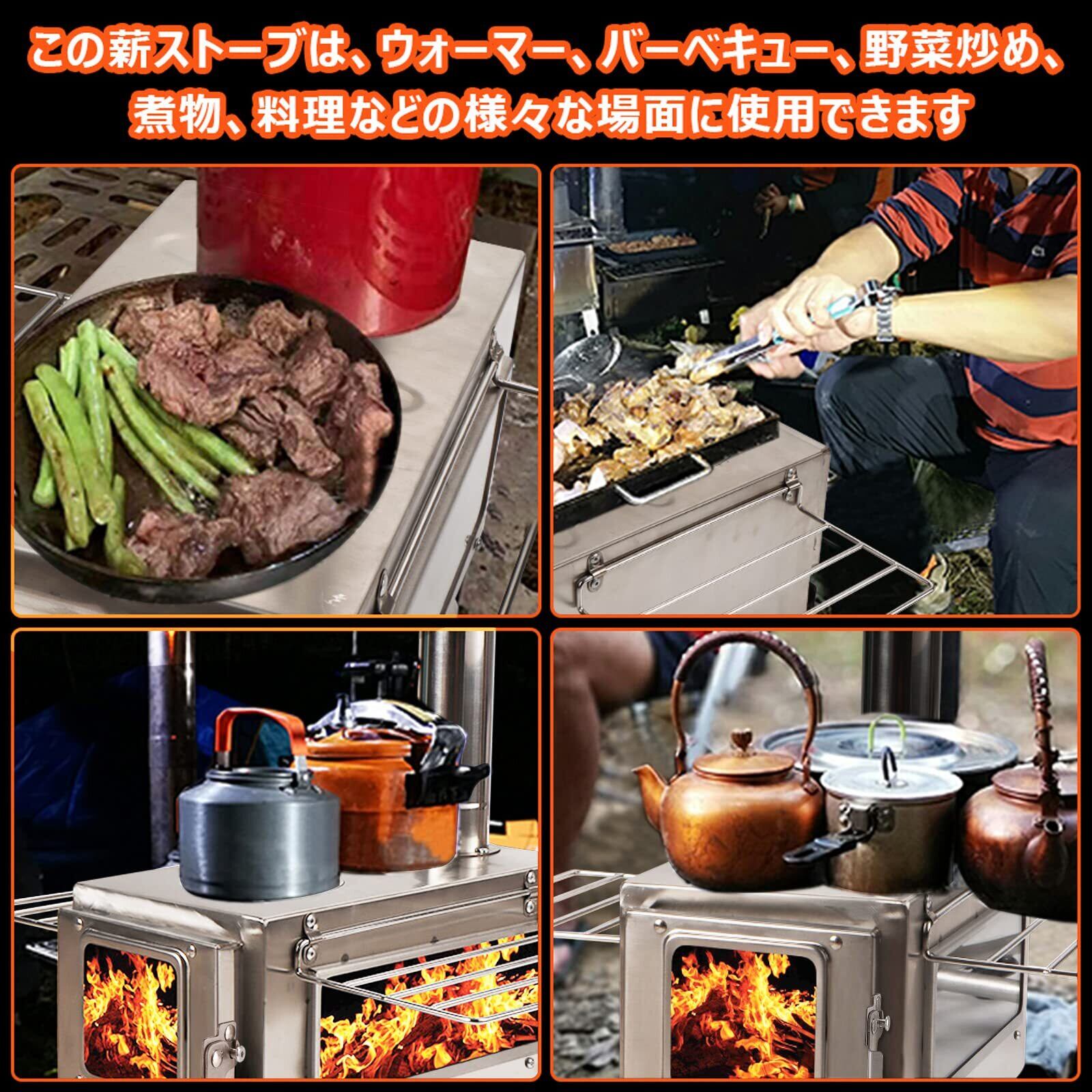 SENQI 薪ストーブ 折りたたみ キャンプ 耐熱ガラス・煙突・スパークアレスター・グリッド棚付き コンパクト アウトドア ウッドストーブ テント用 焚き火台 BBQ 調理 暖炉 冬 収納袋付き