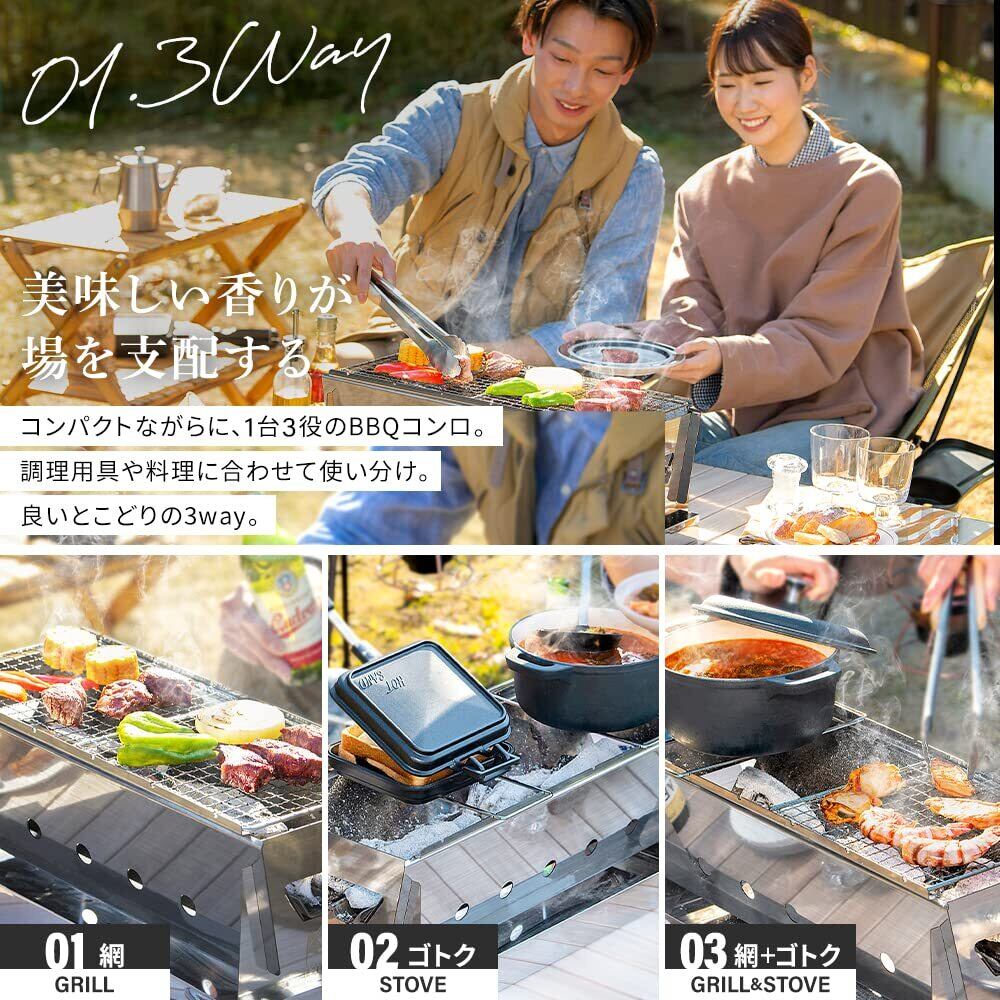 アイリスオーヤマ コンパクトBBQコンロ ステンレス 折りたたみコンロアイリスオーヤマ コンパクトBBQコンロ ステンレス 折りたたみコンロ 1台3役 焼き網・収納バッグ付き 卓上 CBBQ-300 シルバー 1台3役 焼き網・収納バッグ付き 卓上 CBBQ-300/500 シルバー