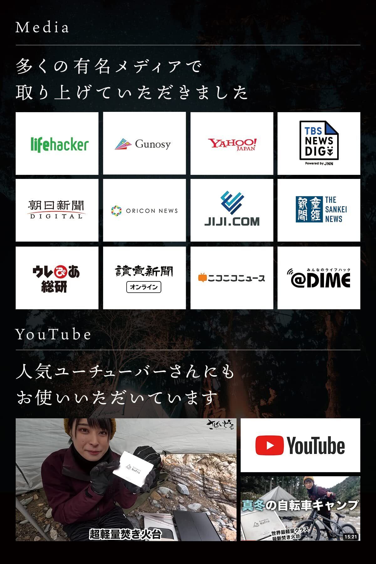 【「タイニーグリルの奇跡」3つの特徴】 1.超軽量・コンパクトなのでキャンプの荷物を劇的に減らせます 2.純チタン製なので軽くて丈夫 3.安心のメイドインジャパン