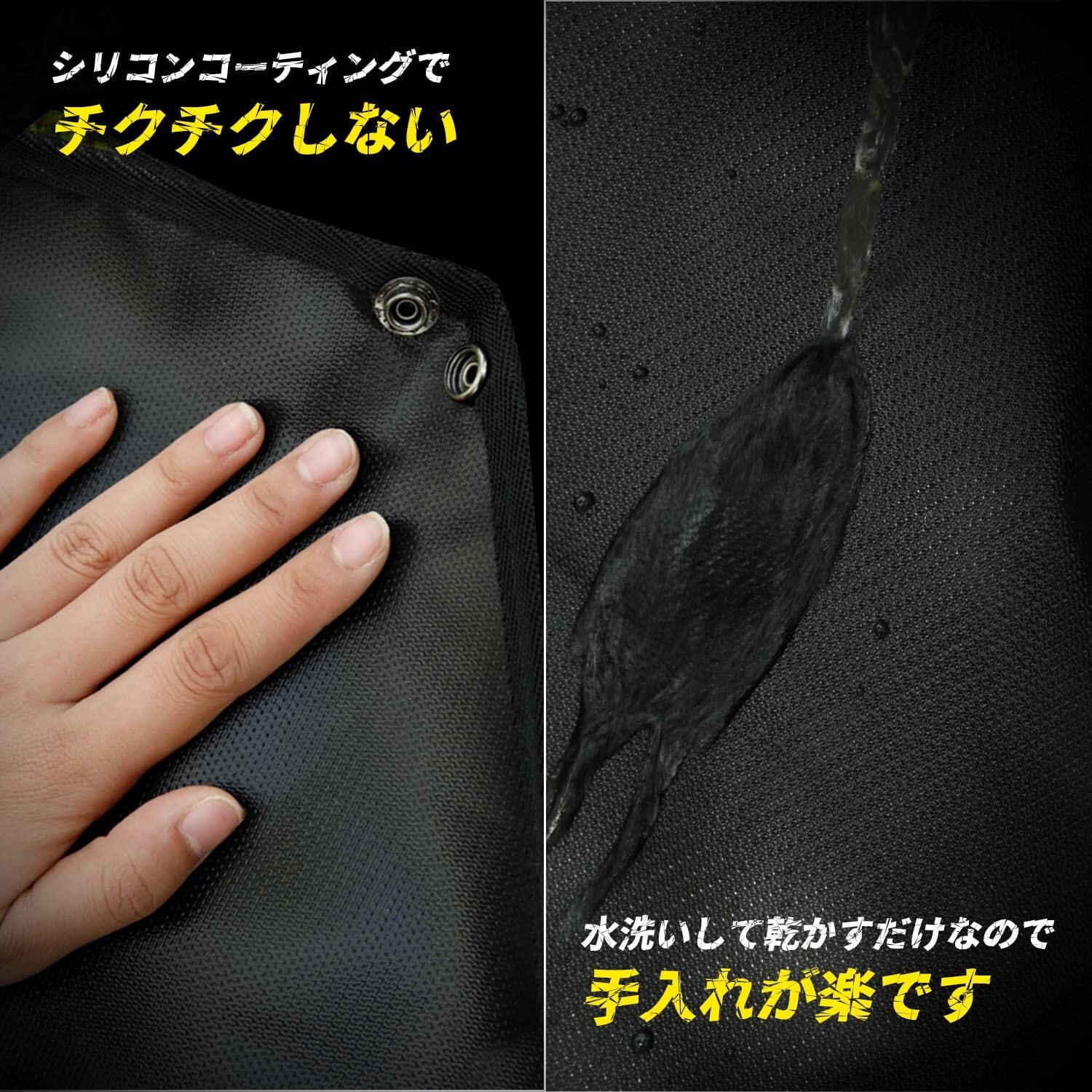 チクチクしなく&水洗い可:焚き火シートには両面シリコンコーディングで、使用後の汚れも水でさっと洗い流して取れ易いし、お手入れが楽です。手触りも滑らかで従来のガラス繊維シートより柔らかくて折り畳む際のチクチク感はせず、触り心地もいいです