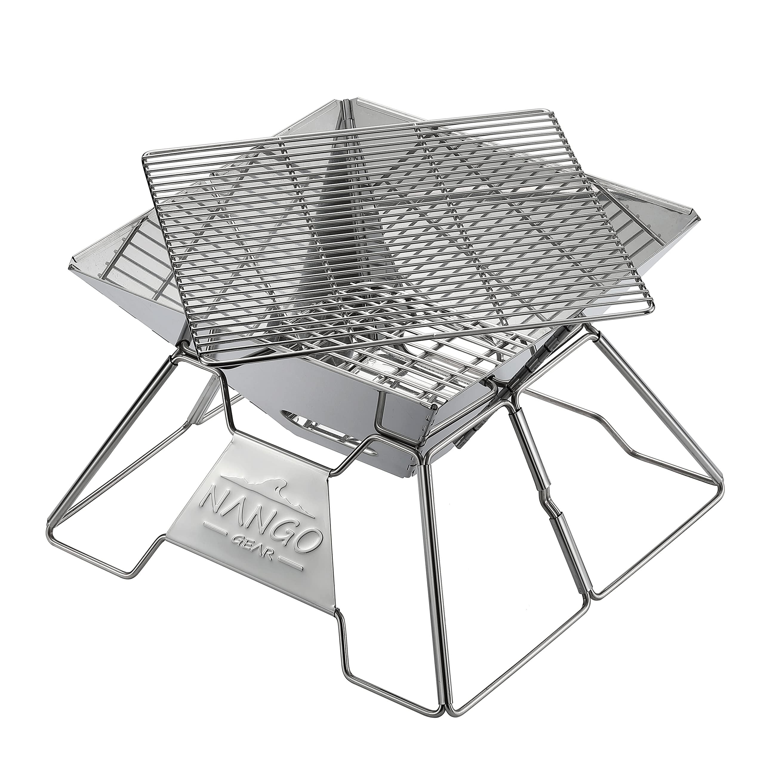 NANGOGEAR(南湖 キャンプ ギア) ステンレス製 焚き火台 M コンパクト 2WAY 焚き火グリル ハードタイプ焼き網 帆布製ケース付き 11107(MT-2)