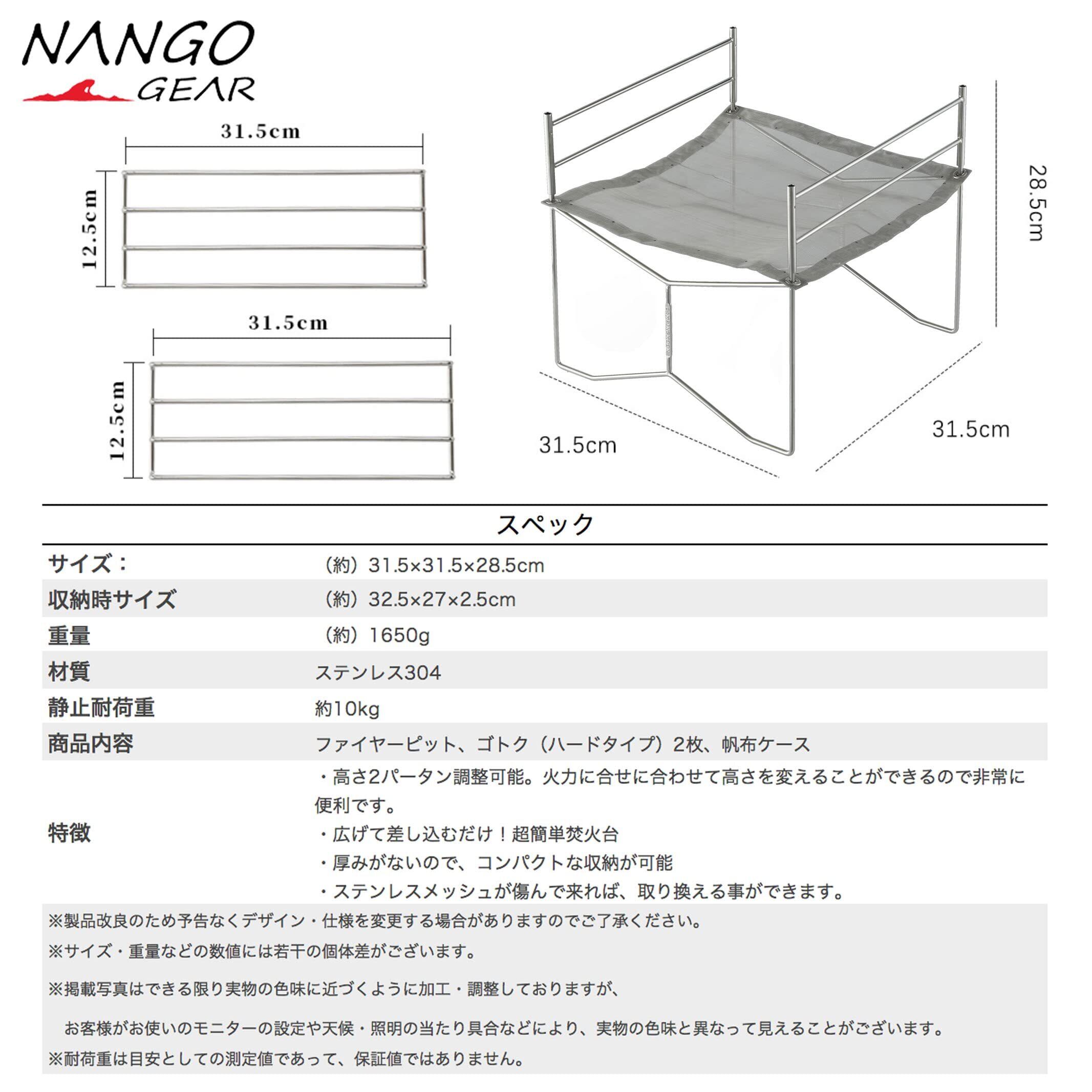 【2022最新】NANGOGEAR(南湖 キャンプ ギア) 焚き火台 ファイヤーピット ステンレスメッシュ ソログリル 11104(SOLO-202)