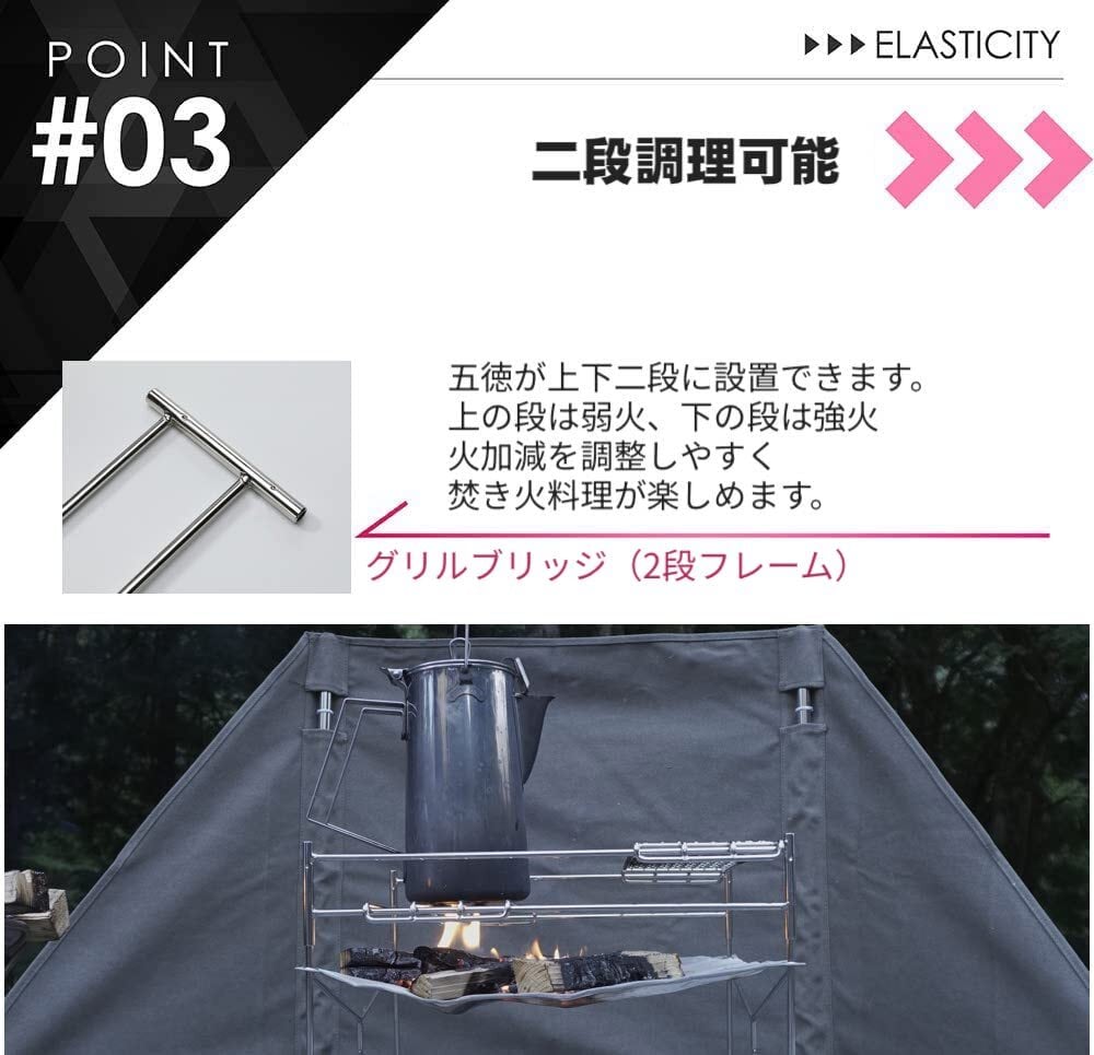 特徴:▶高さ2パータン調整可能。火力に合せに合わせて高さを変えることができるので非常に便利です。 ▶広げて差し込むだけ!超簡単焚火台。▶薄くコンパクトな収納が可能。▶ステンレスメッシュが傷んで来れば、取り換える事ができます。