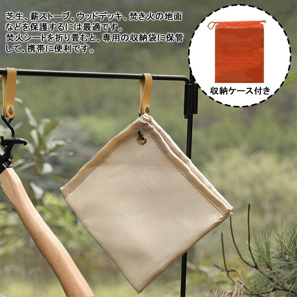 OTAVILEM 焚き火シート キャンプ スパッタシート 焚き火台シート バーベキュー 防炎シート 極厚 芝生保護 耐熱シート 薪ストーブ バーベキューコンロ 焚き火用 ガラスファイバー 収納ケース付き 60*80cm