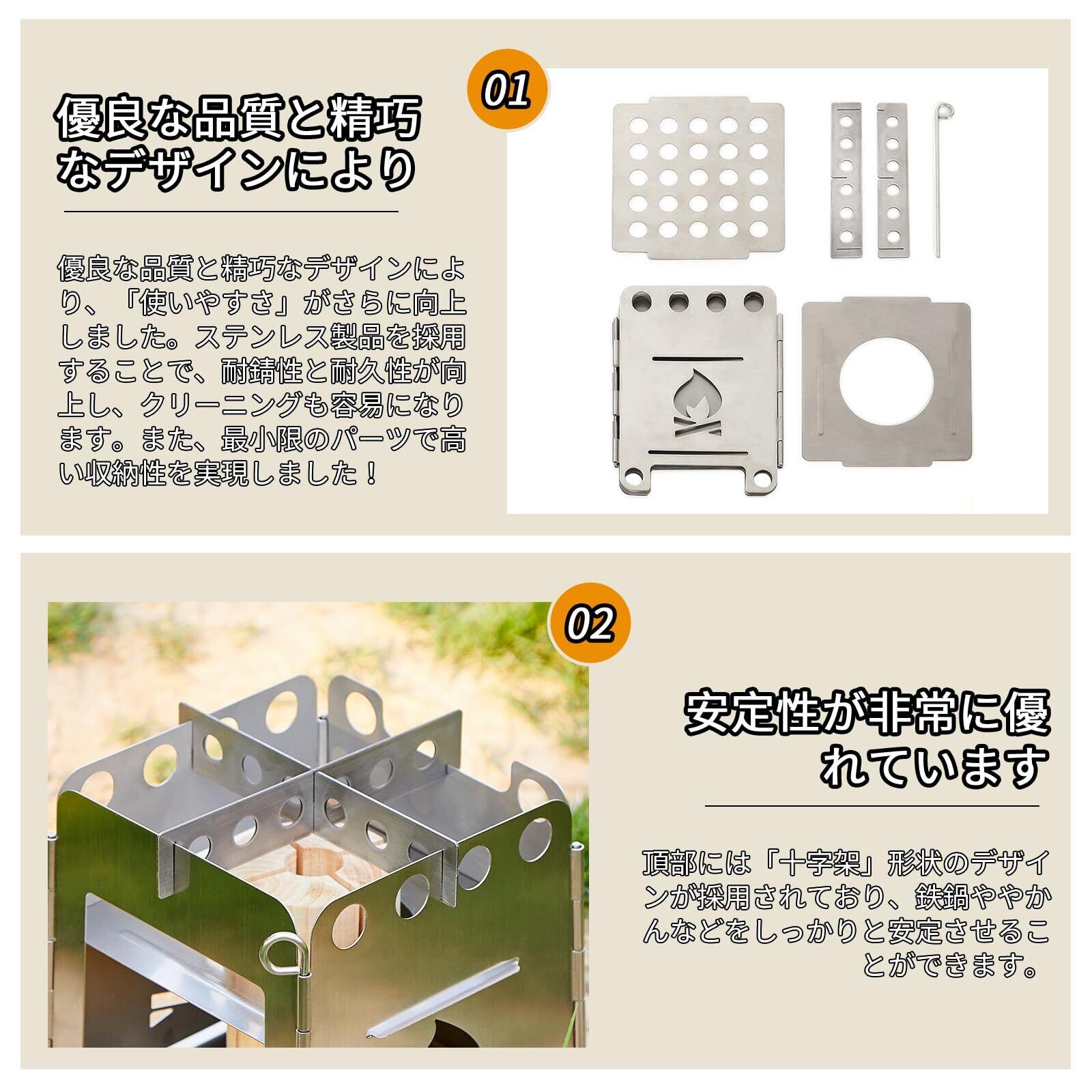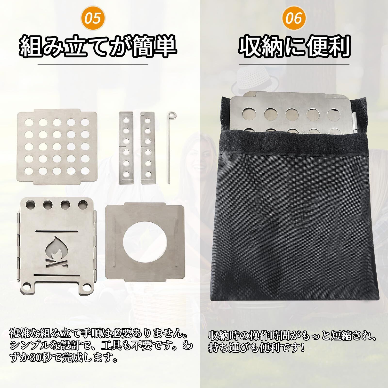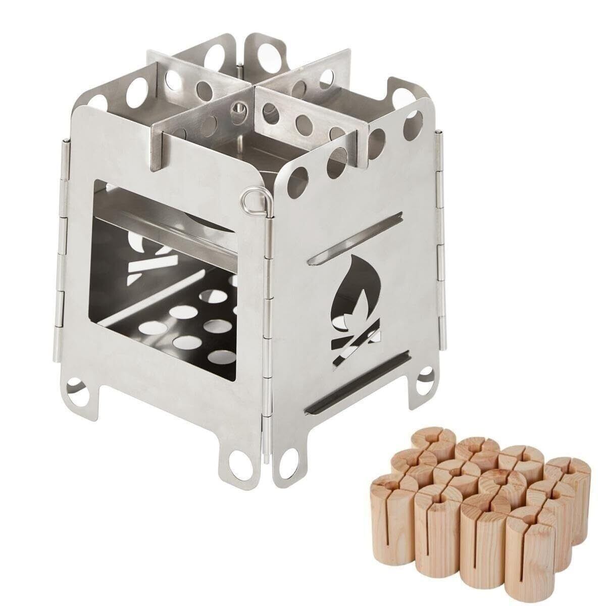焚き火台 コンパクト 焚火台 ウッドストーブ 小型 ステンレス製 軽量 折りたたみ式 ポケットコンロ 焚き火台 ソロ 組立簡単 アウトドア キャンプ用 収納袋付き 13奥行き x 12幅 x 16.5高さcm 薪付き(12枚)
