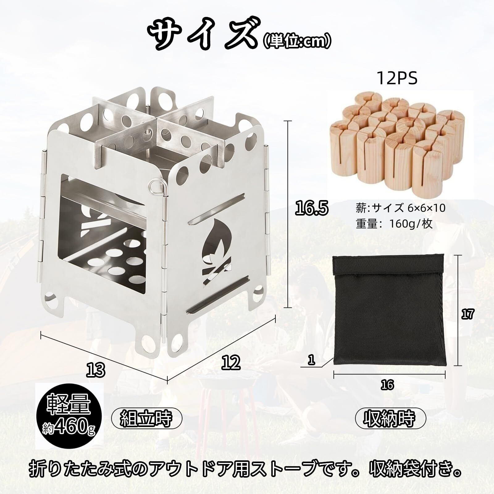 【新着商品】焚き火台 コンパクト 焚火台 ウッドストーブ 小型 ステンレス製 軽量 折りたたみ式 ポケットコンロ 焚き火台 ソロ 組立簡単 アウトドア キャンプ用 収納袋付き 13奥行き x 12幅 x 16.5高さcm 薪付き(12枚)