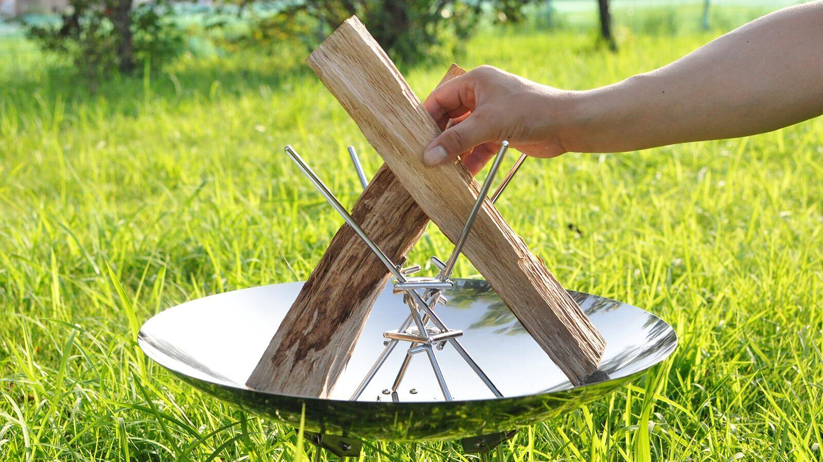組立1秒、ねじるだけ!薪を立て掛ければ、美しい炎へ導くティピー型の完成!