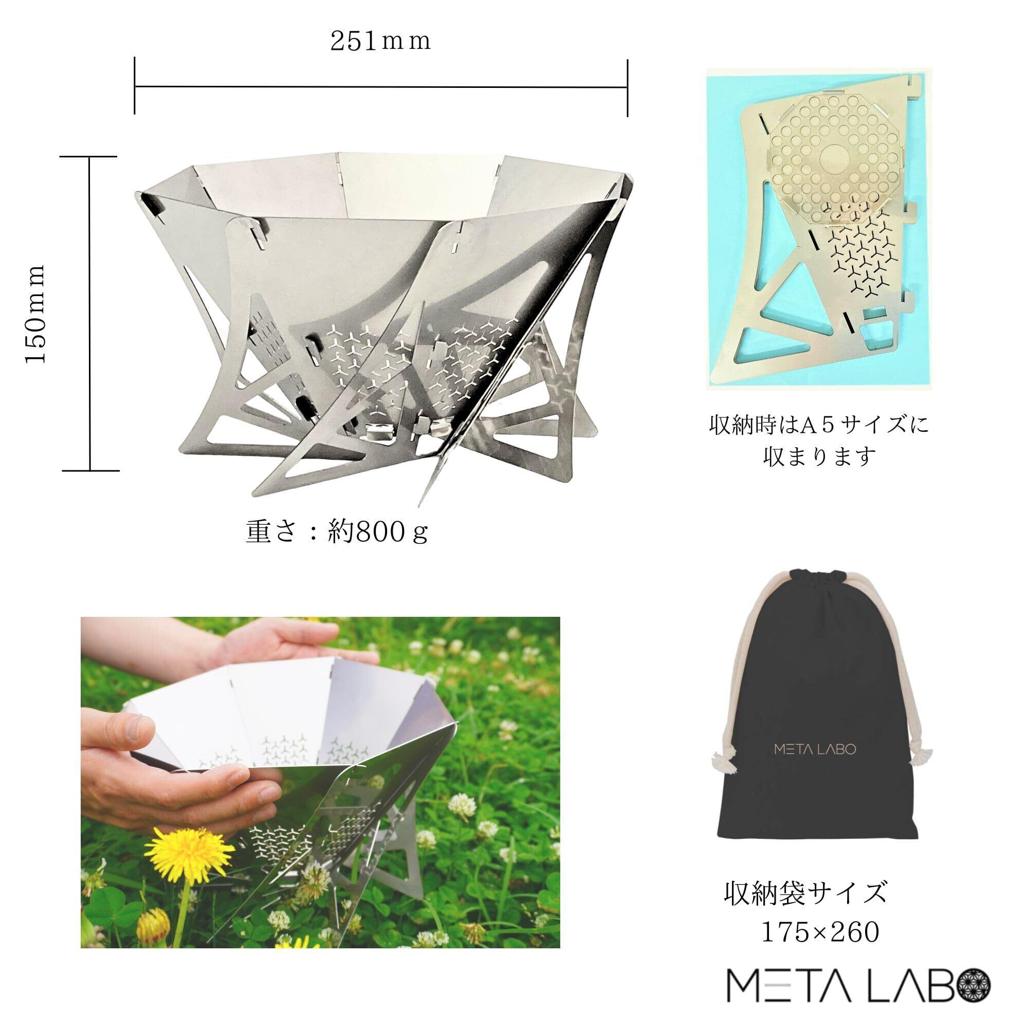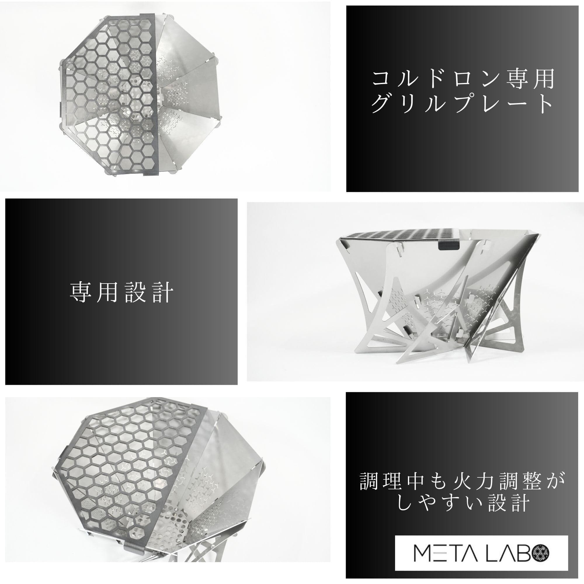 METALABO(メタラボ) 焚火台 コルドロン 焚き火台 ソロ コンパクト 軽量 800gおしゃれ オシャレ 専用グリルプレート付 専用収納袋付 A5サイズ収納