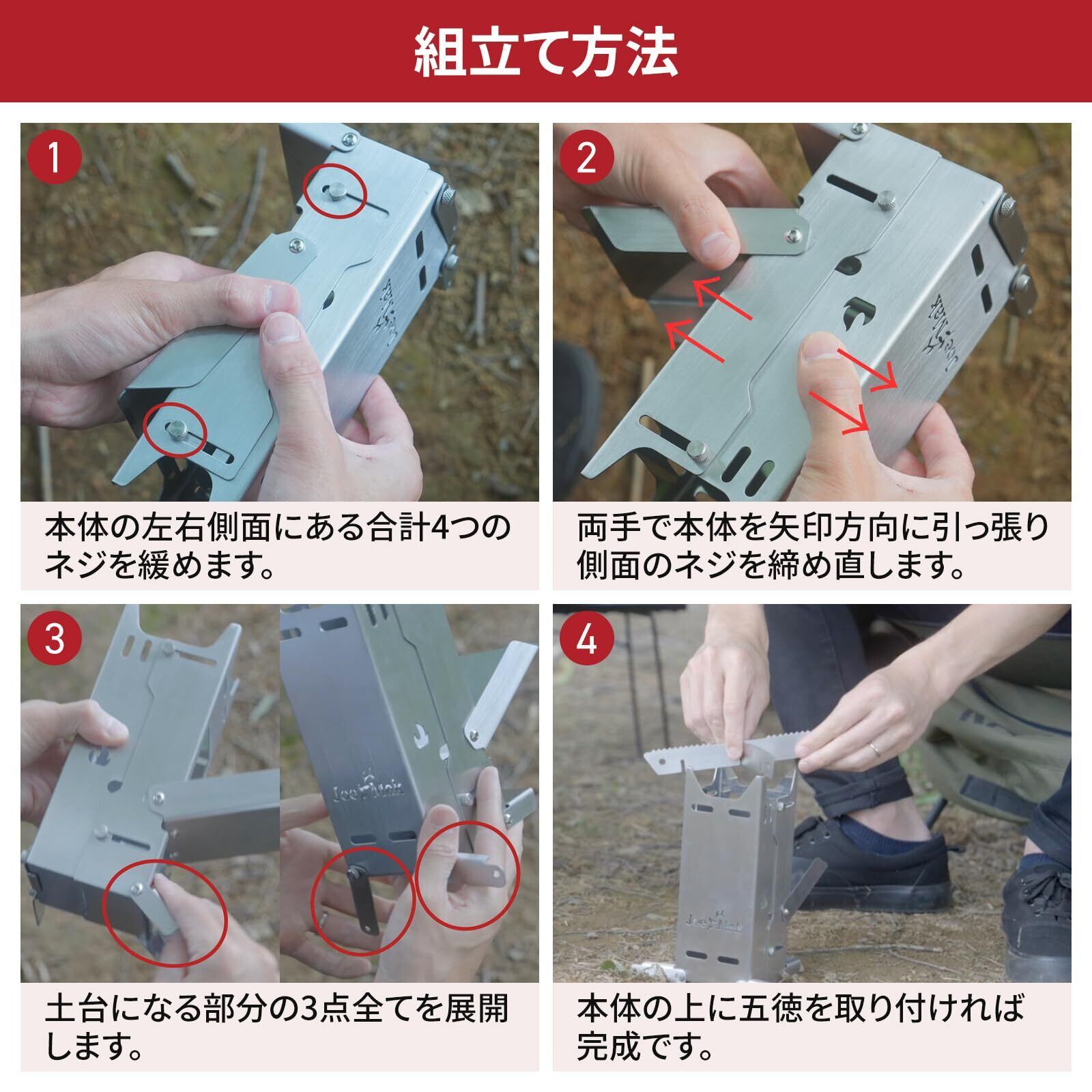 【驚異的なスピードで使用可能に】キャンプの準備に時間をかけたくないあなたへ!このロケットストーブは30秒という驚きの速さでセッティングが可能。ネジなどの紛失しやすい部品も一切なし。煙突効果を活かした設計で、冷たい空気を効率良く取り込み、感動するほどクイックな点火を実現します。