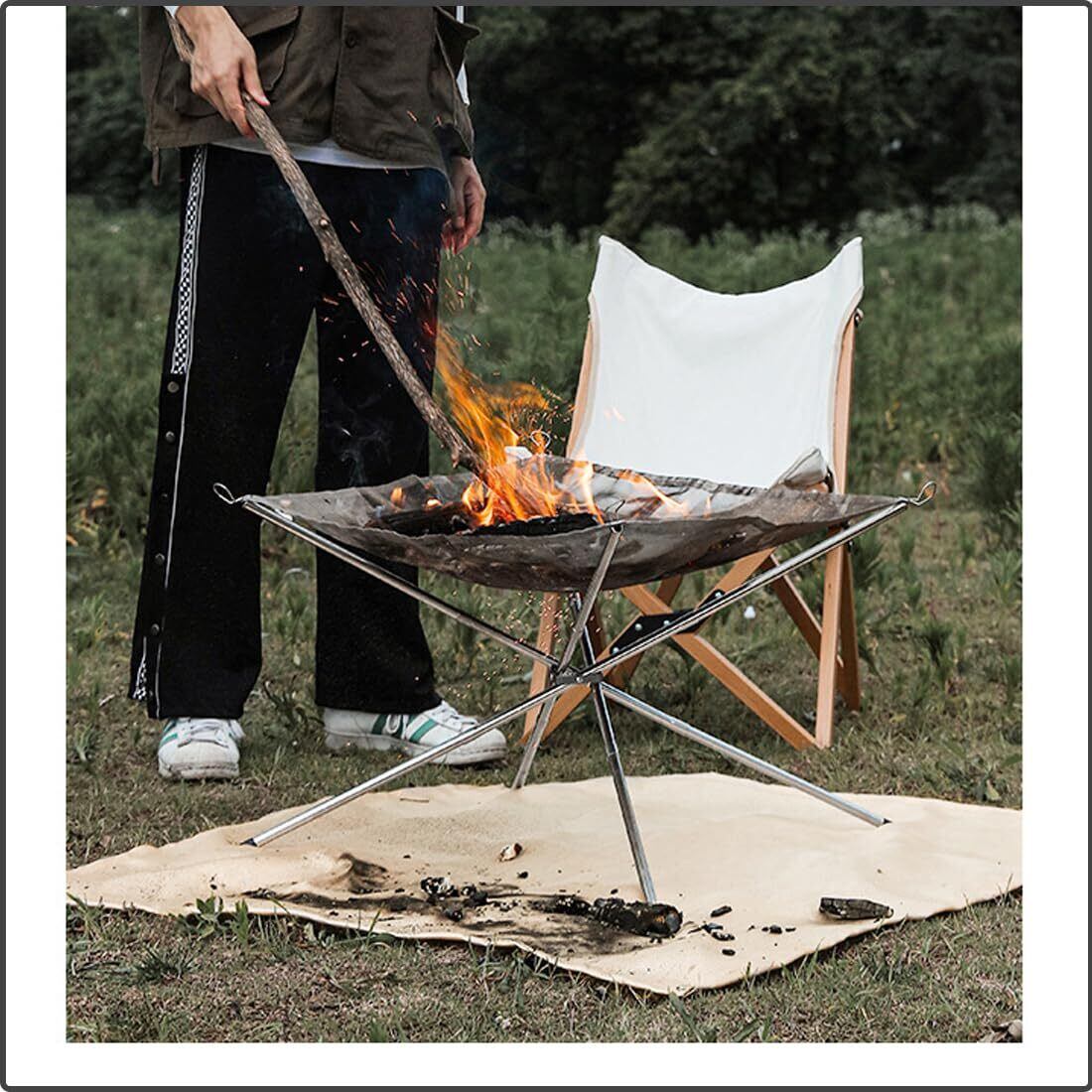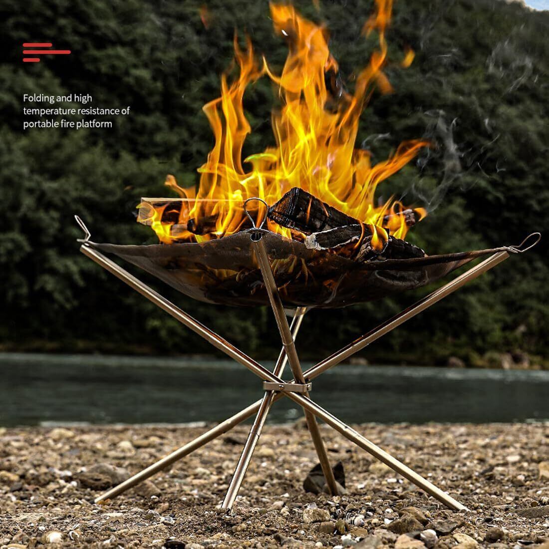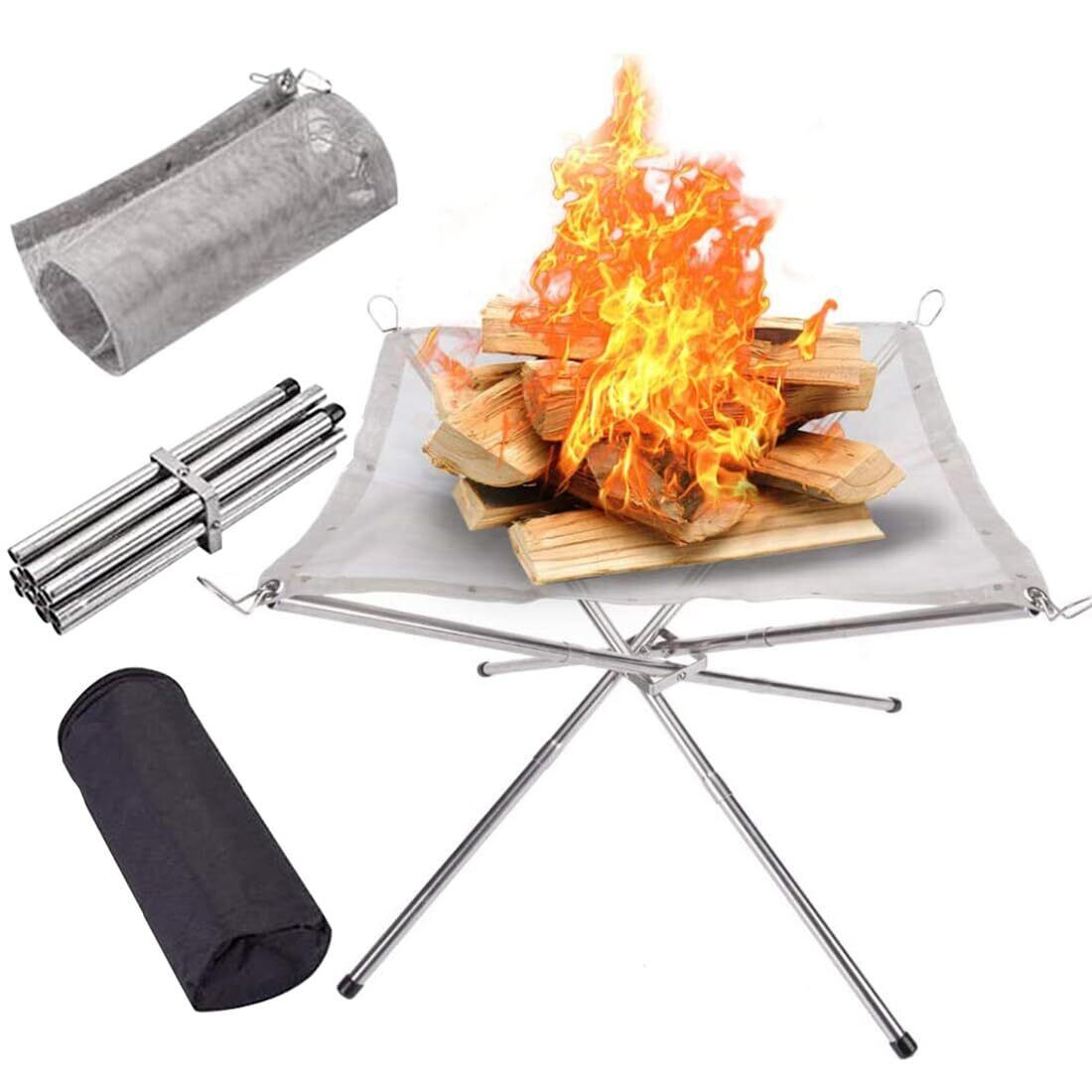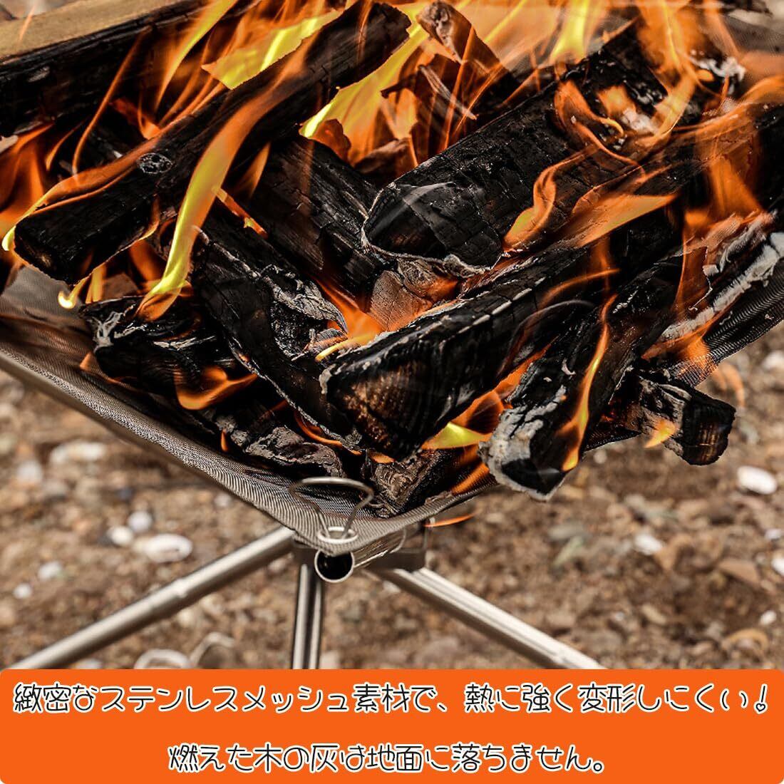 焚火台 折りたたみ式 たき火台 ステンレス304 焚き火グリル 焚き火台 キャンプ用グリル 薪ストーブ バーベキューコンロ 焚き火用 耐高温ステンレスメッシュ 収納袋付き (Sサイズ:41×41×33cm)