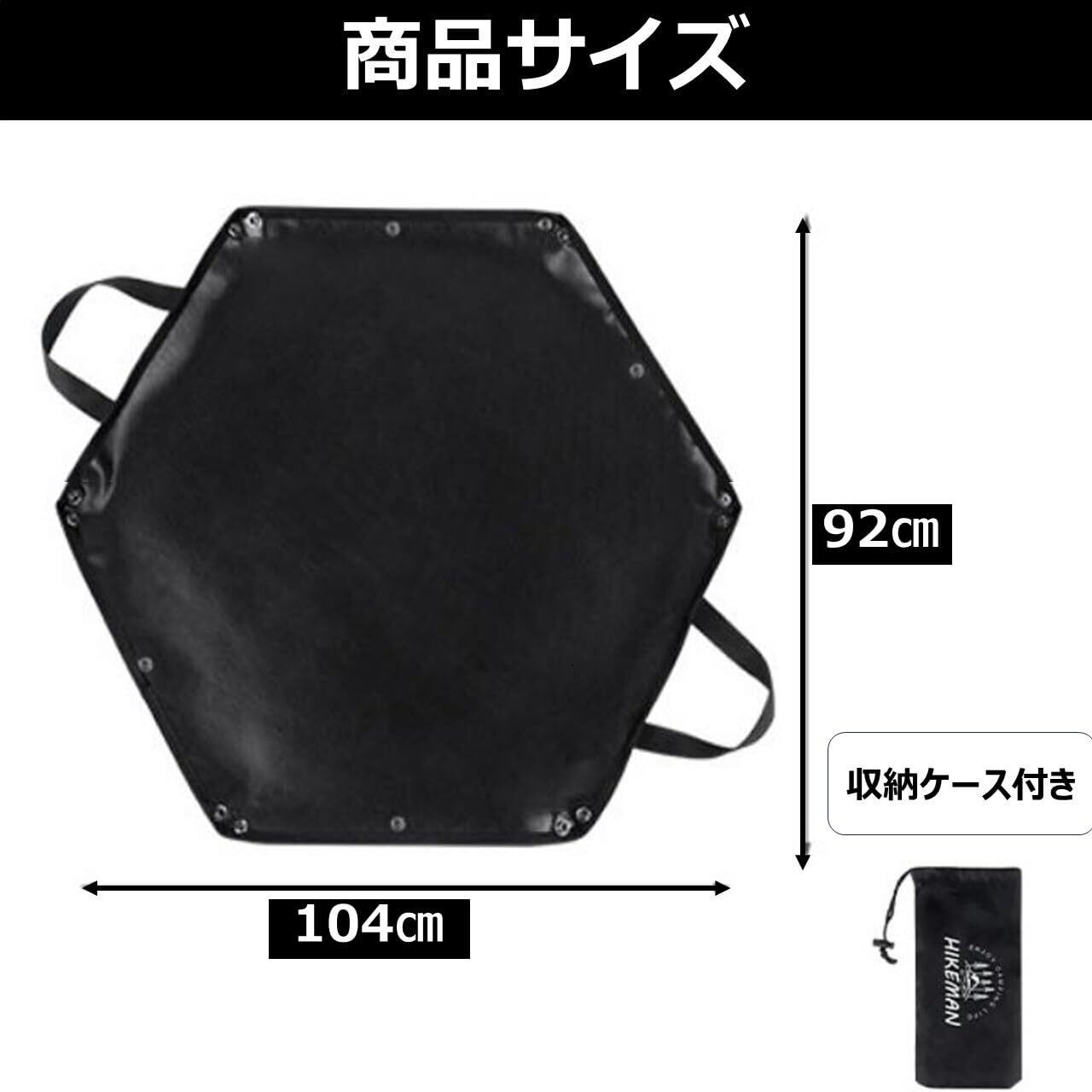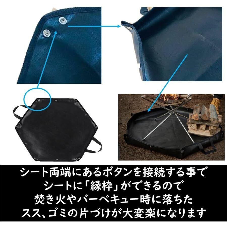 【焚き火シート本体】64㎝×57㎝・六角形・縁自立タイプ・持ち手あり