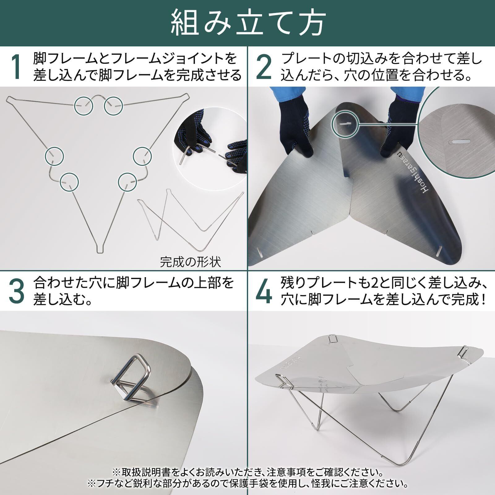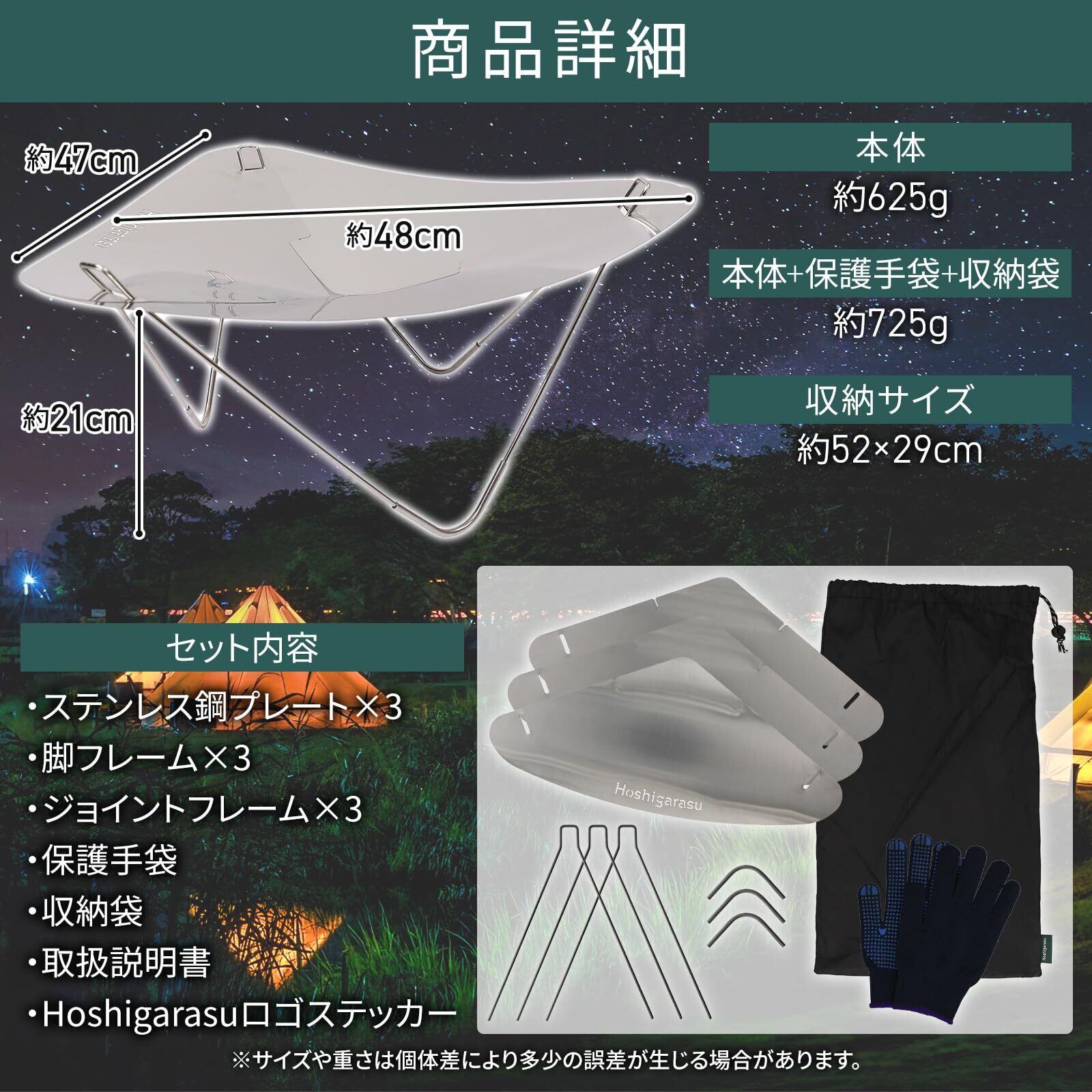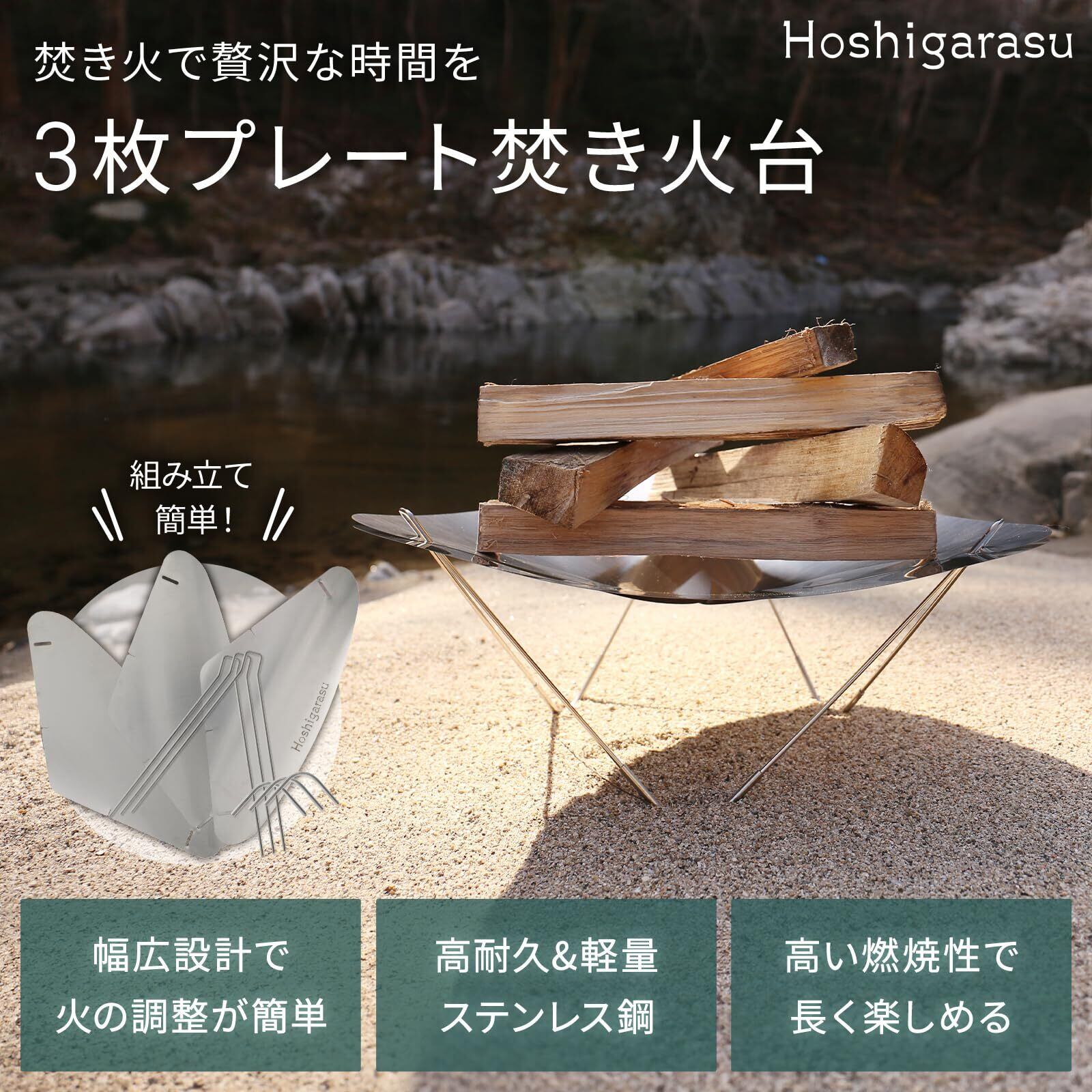 【軽量で持ち運びやすい】Hoshigarasuの焚き火台は折りたたみ式で収納袋と手袋付き!軽量でありながらも丈夫な構造を実現しています。組み立てが簡単で、キャンプやピクニックなどのアウトドア活動に持ち運びやすい設計です。シンプルなデザインと幅広の設計により、長い薪も簡単に入れることができ、使い勝手の良さが魅力的です。