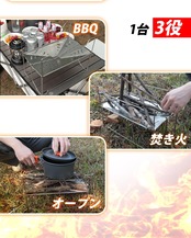 【オールインワンの調理体験】ロストルの微調整で多彩な調理が可能。焚き火、バーベキュー、煮物、焼き串など、1台でさまざまな調理方法に対応。コンパクトながら多機能で、アウトドアシーンでの使い勝手が抜群です。