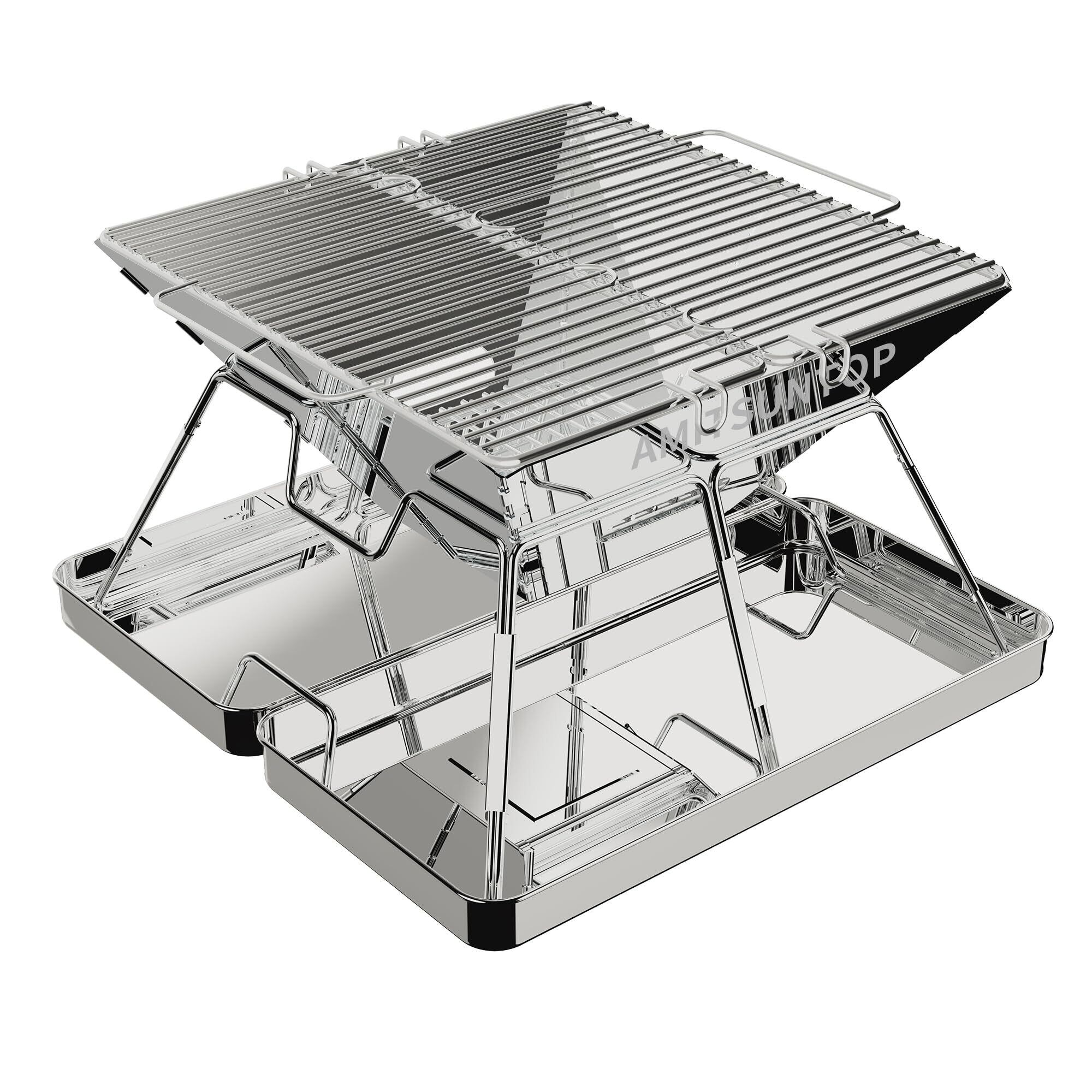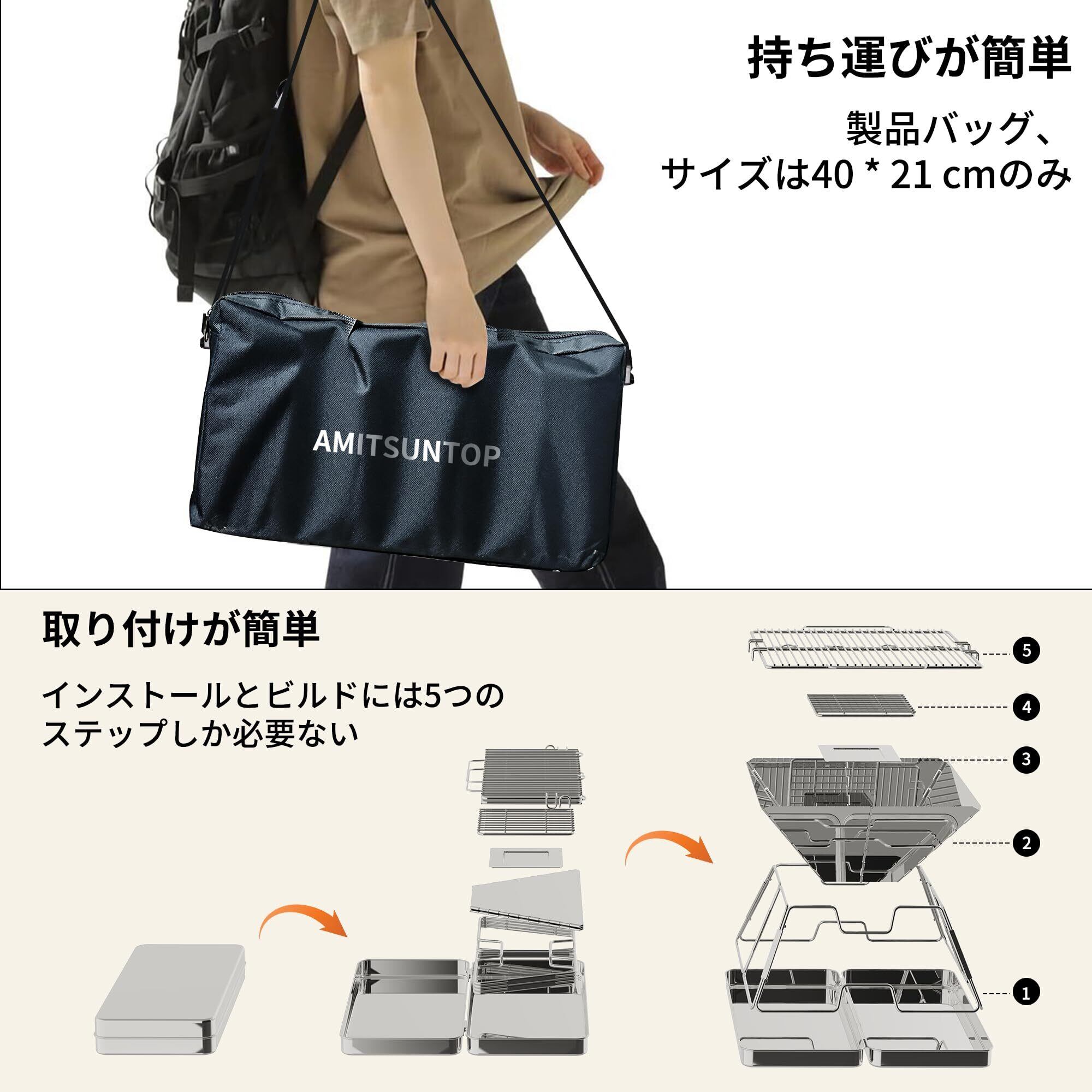 焚き火台 バーベキュー コンロ 屋外での焚き火 コンパクトな折りたたみ収納ステンレス鋼 収納袋付き グリルデザインの改良により 安定性と利便性が向上