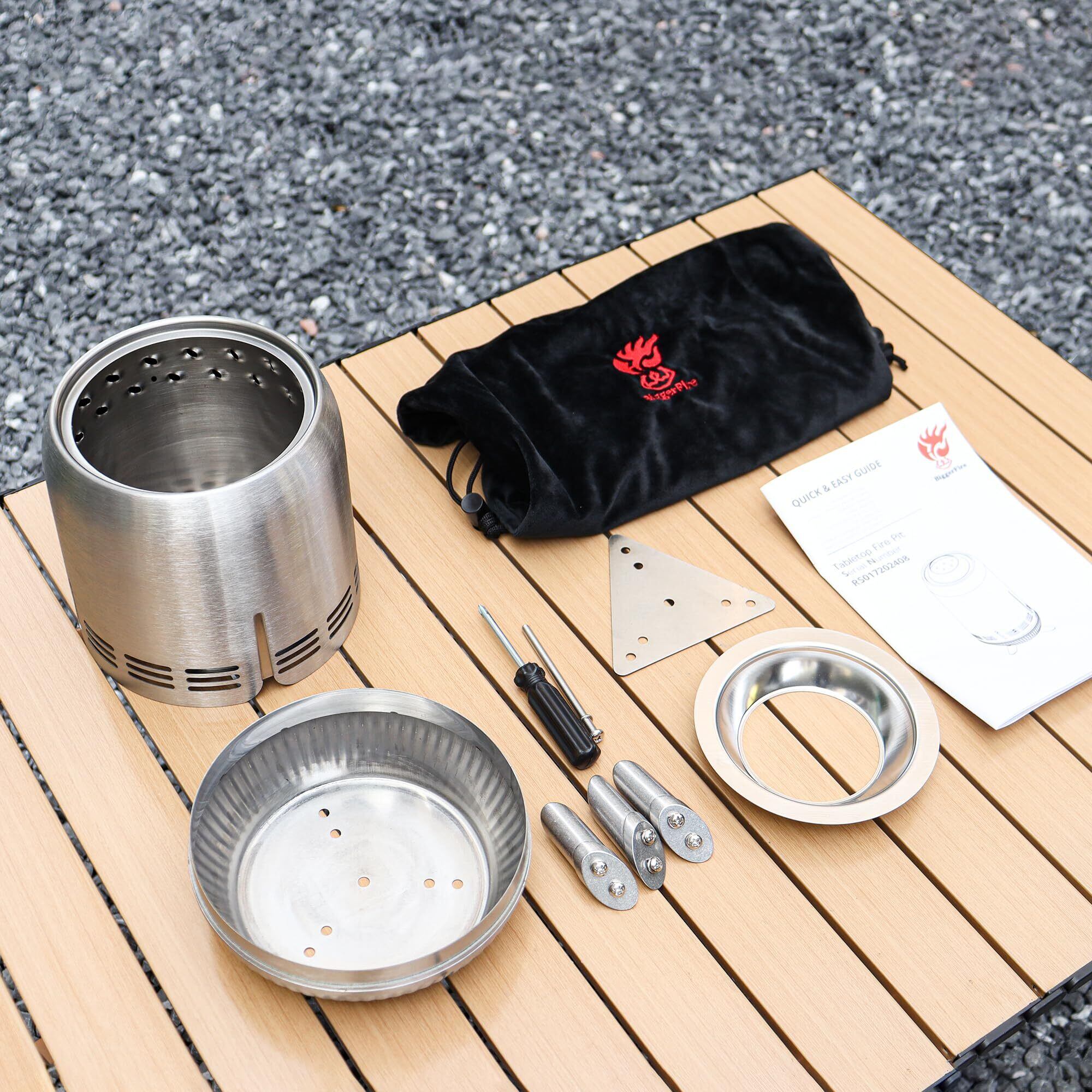 【新春セール】卓上焚き火台、ステンレス鋼ミニ屋外ストーブ、低煙燃焼ポータブル焚き火台焚き火台、ペレットまたは木材を燃料とし、都市&郊外用、トラベルバッグ付き