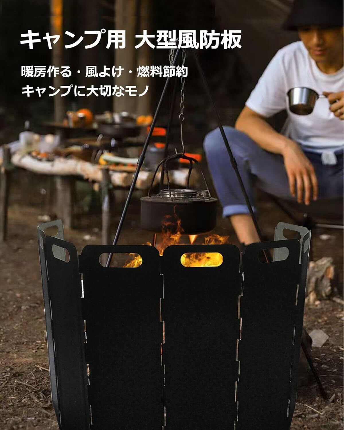 【1台多役】暖房効果を作りたり、風避けて炎を安定に燃焼させたり、燃料を節約したり、火の粉が飛び散る危険も防げます、1台で多くの役割を果たしています;焚き火台に組合わせて、風による燃料の浪費、炎の不安定さを防ぎ、燃焼効率が大幅に向上して調理時間を効率的に短縮します;また油ハネを防止できるし、寒い時期に暖を取るのも非常に役立ちます