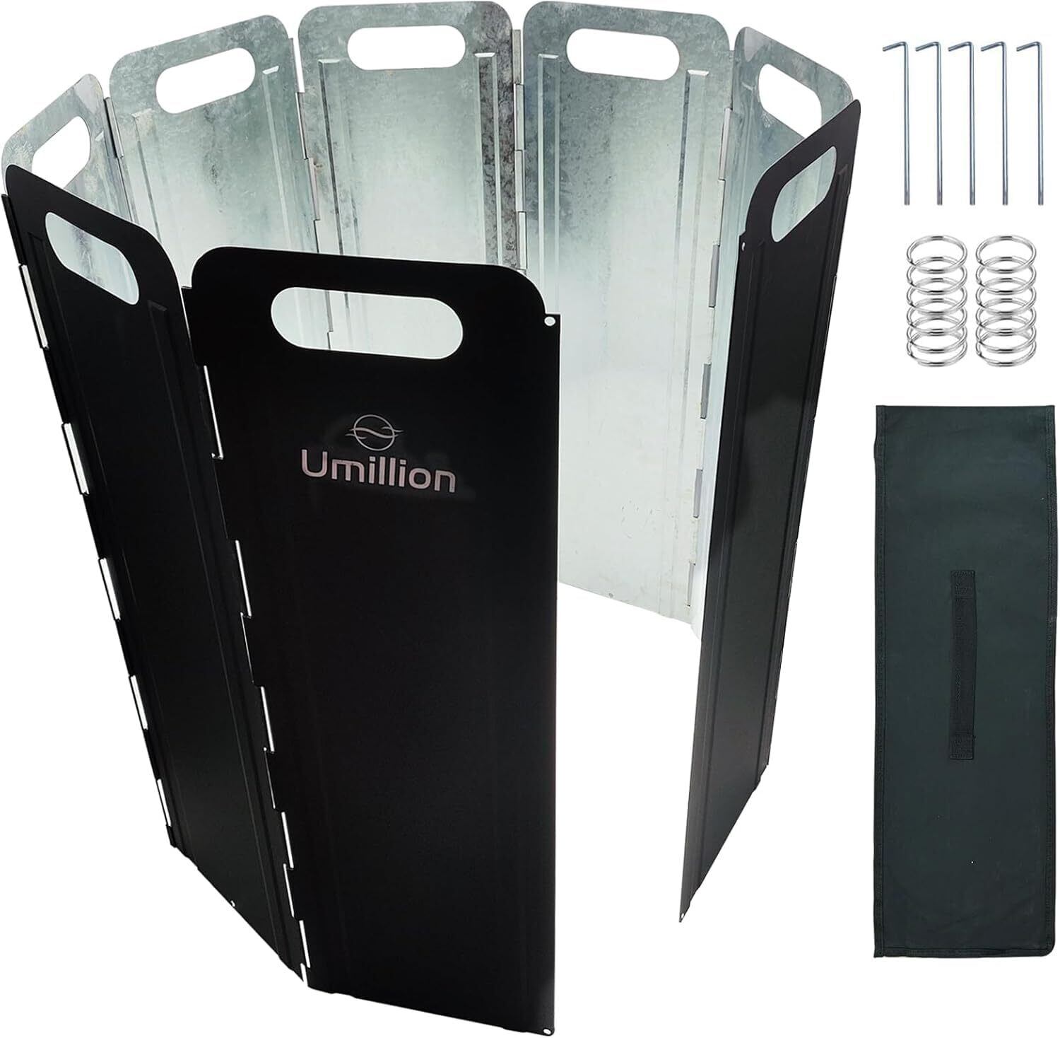 【在庫処分】ウインドスクリーン リフレクター 焚き火 風防 8枚式/10枚式大型風防板 50cm 60cm 70cm 焚き火反射板 亜鉛メッキ鋼板 アウトドア防風用 片面黒 焚き火台防風 焚き火 風除け バーベキュー用 キャンプ用 固定用具と収納袋付き (黒銀8枚式, 高さ60cm)