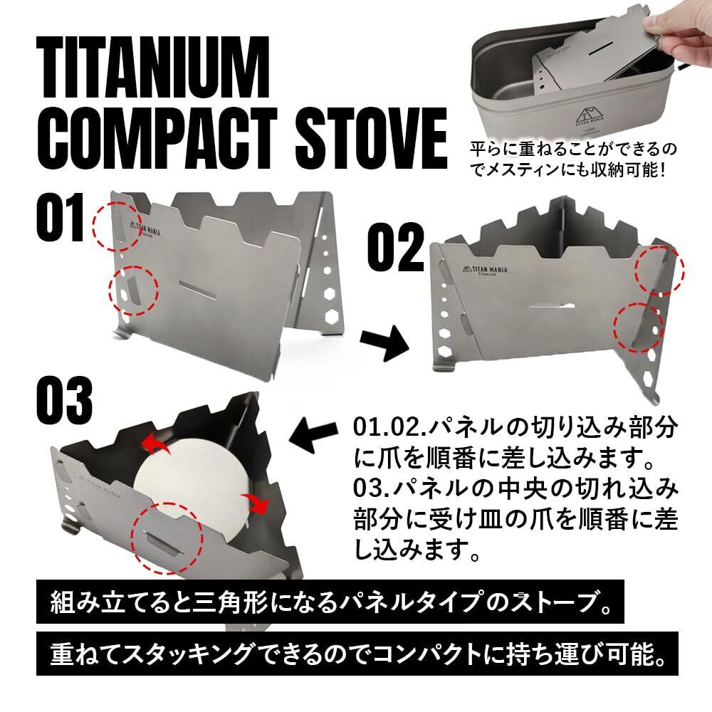TITAN MANIA(チタンマニア) ポケットストーブ チタン製 ネイチャーストーブ デルタ型 ポケットコンロ ミニ コンロ コンパクト 組み立て式 超軽量 頑丈 五徳 風防 焚き火台 ソロキャンプ BBQ バーベキュー アウトドア キャンプ用品 収納袋付き