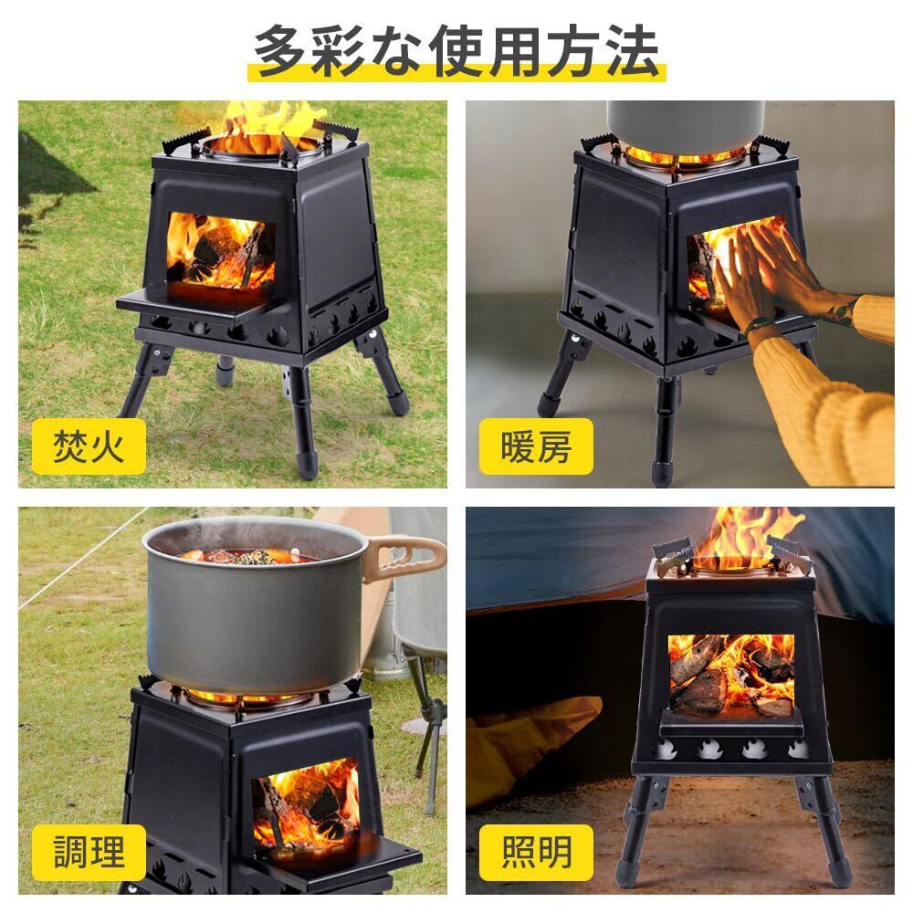 薪ストーブ キャンプ 二次燃焼 【置くだけでコンロ調理もできる】 小型 ミニ キャンプ用 アウトドア ポータブル 折りたたみ コンパクト 軽量 持ち運び ウッドストーブ ソロ キャンプストーブ 薪 簡易 焚き火台 焚き火 スタンド 収納袋 付き ストーブ 暖房 調理 料理 コンロ