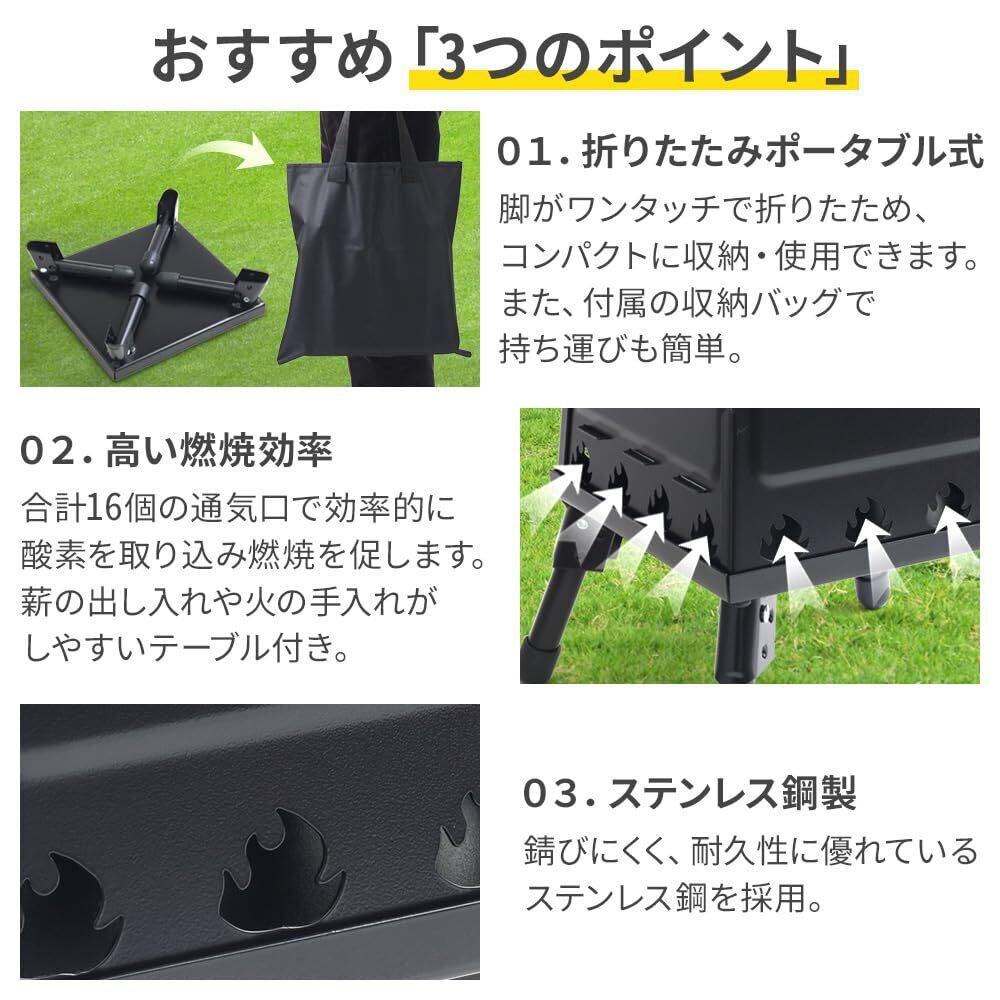 【在庫セール】薪ストーブ キャンプ 二次燃焼 【置くだけでコンロ調理もできる】 小型 ミニ キャンプ用 アウトドア ポータブル 折りたたみ コンパクト 軽量 持ち運び ウッドストーブ ソロ キャンプストーブ 薪 簡易 焚き火台 焚き火 スタンド 収納袋 付き ストーブ 暖房 調理 料理 コンロ | paghag