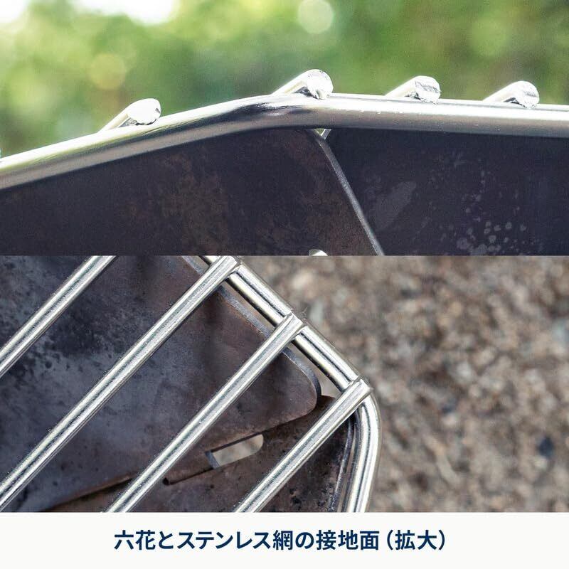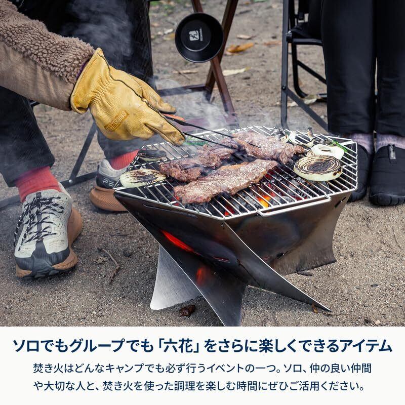 【焚き火台六花用の焼網】 六花専用の直火調理にも使用できるステンレス網。ヘキサ型(六角形)なので、皆で囲みやすくなっています。