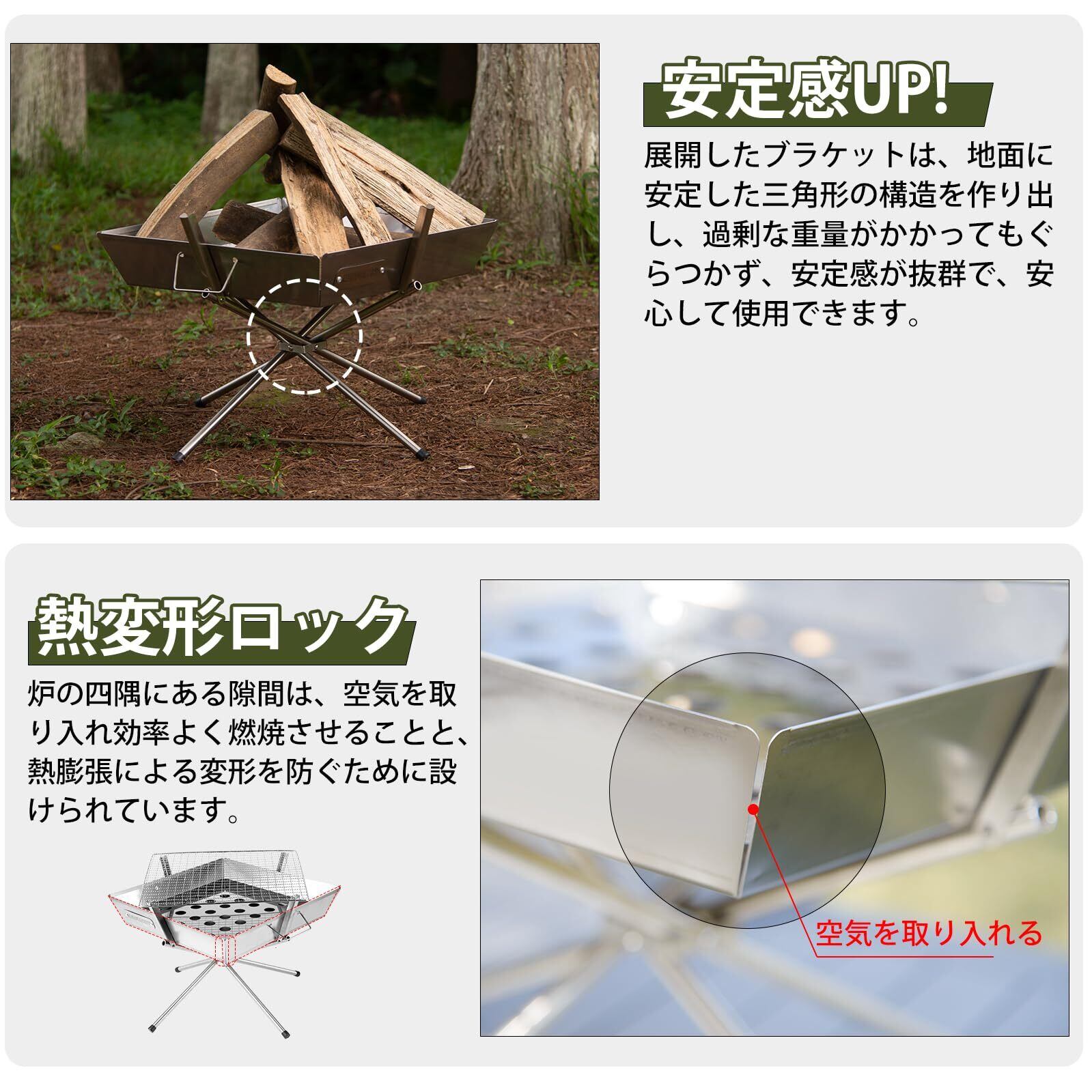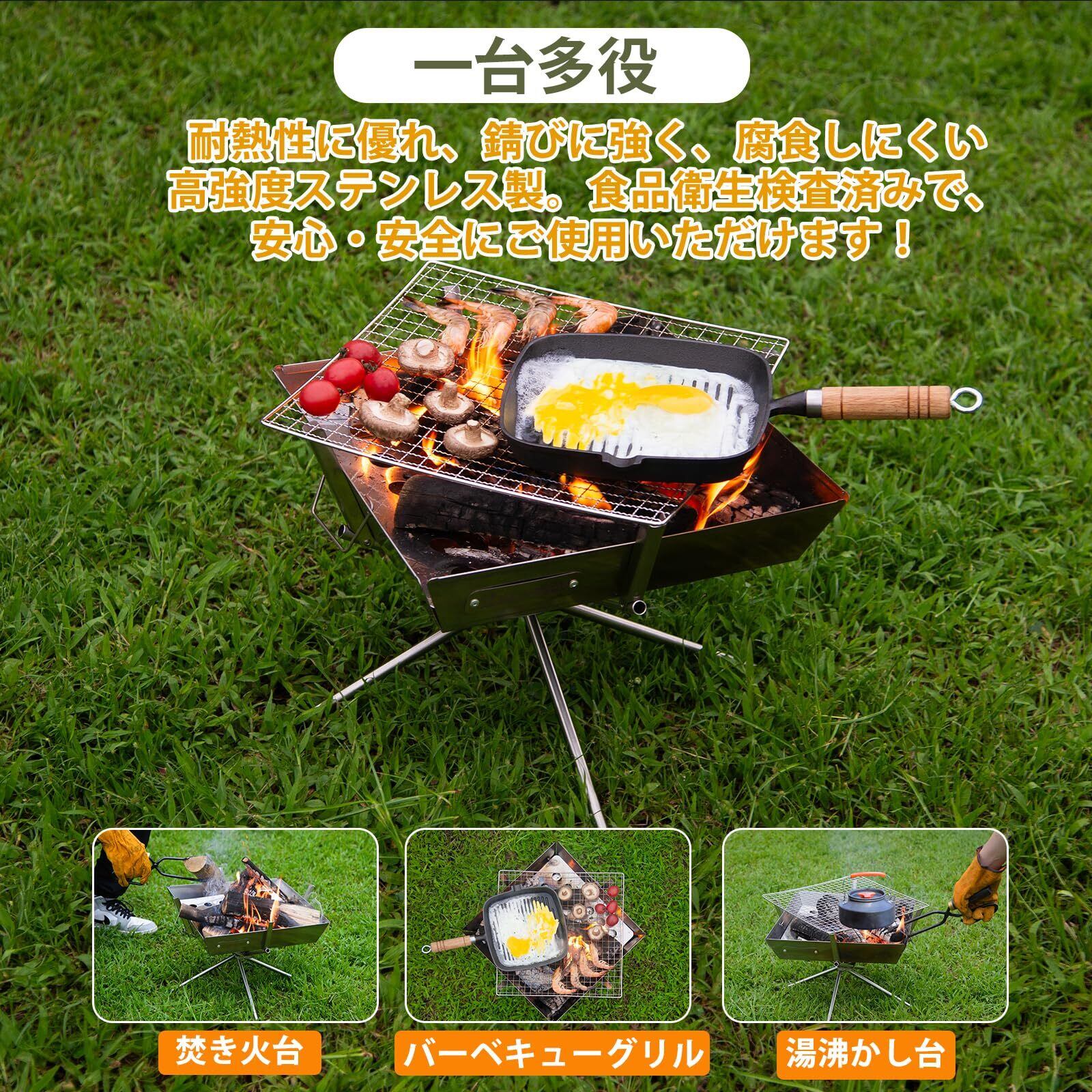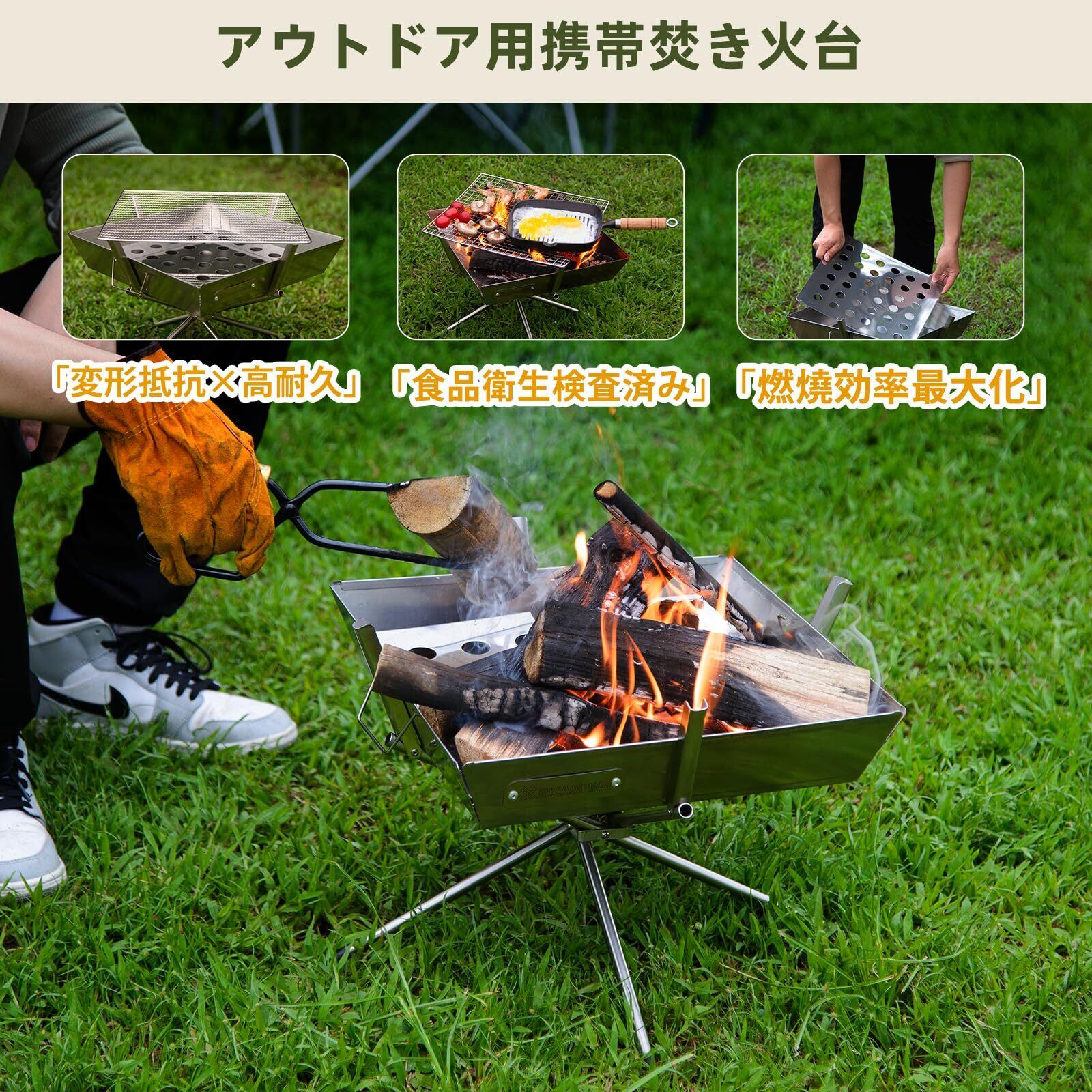 焚き火台 XINCAMPING バーベキューコンロ ソロ 炊き火台 コンパクト 折りたたみ収納 2-4人用 収納袋付き 1台多役 ステンレス304 安定性 便利性 アウトドア キャンプ