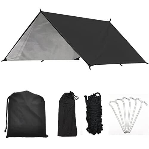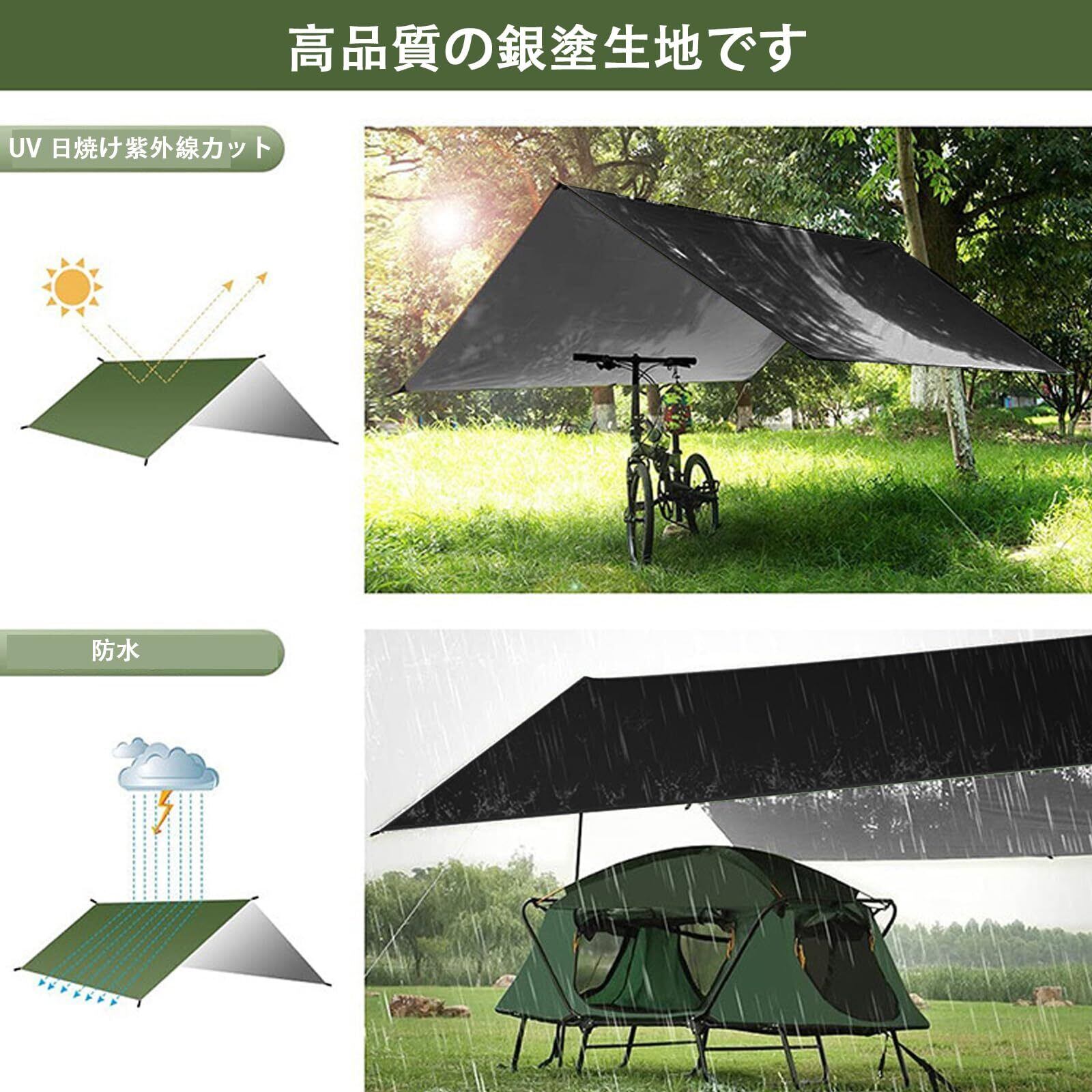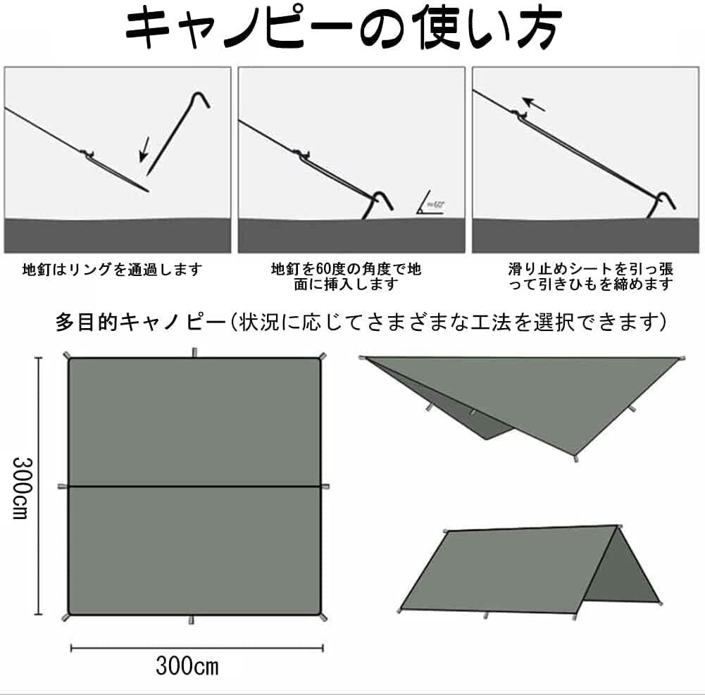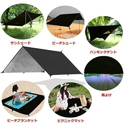 テントタープは、柔軟性と耐久性があり、あなたのハンモックや避難所機器、衣服やあなたの犬は良い避難所となっています。タープとして、キャンプ用、登山用、海辺用、野外活動用、天台用、駐車場用、様々なところで利用できます。圧迫感のない、新構造で広い面積を確保した軽量タープです、数人一緒に使られます。