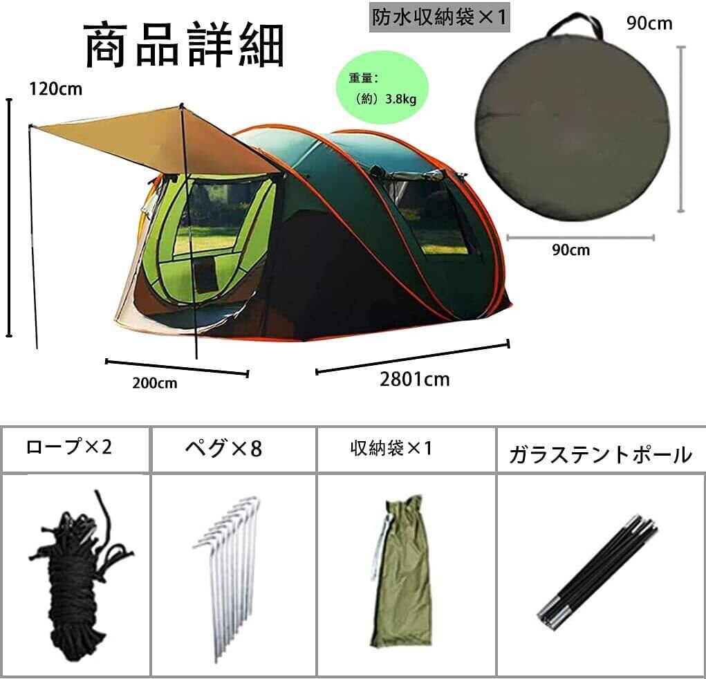 【新春セール】テント ポップアップテント 1秒設営 5-6人用 超軽量 折りたたみ バージョンアップ 耐水圧4000mm UVカット 紫外線防止 通気 前後ダブルドア 防虫対策(メッシュ窓付き) 日陰濃い アウトドア 花見 海水浴 キャンプ用品 災害 専用収納袋付属 日本語の説明2.8 x 2 x 1.2高さ m | paghag