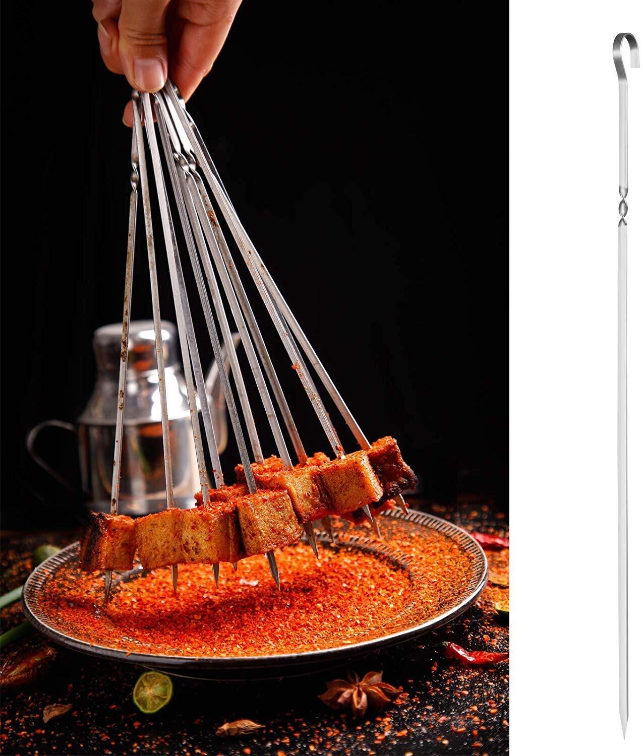 デザイン:具材が刺しやすいのが、平型のバーベキュー串です。刺しずらい鶏肉や、外れやすい薄切りの野菜もすっきりと刺すことができます。串に食材を刺して焼くだけで、見た目が一気に豪華になります。