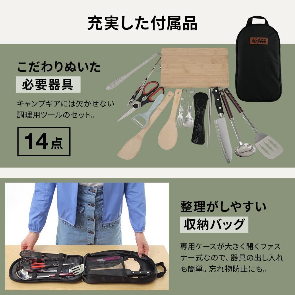 【数量限定】キャンプグリーブ 調理器具 セット 14点 キャンプ アウトドア クッキングツールセット キッチンツール (黒)