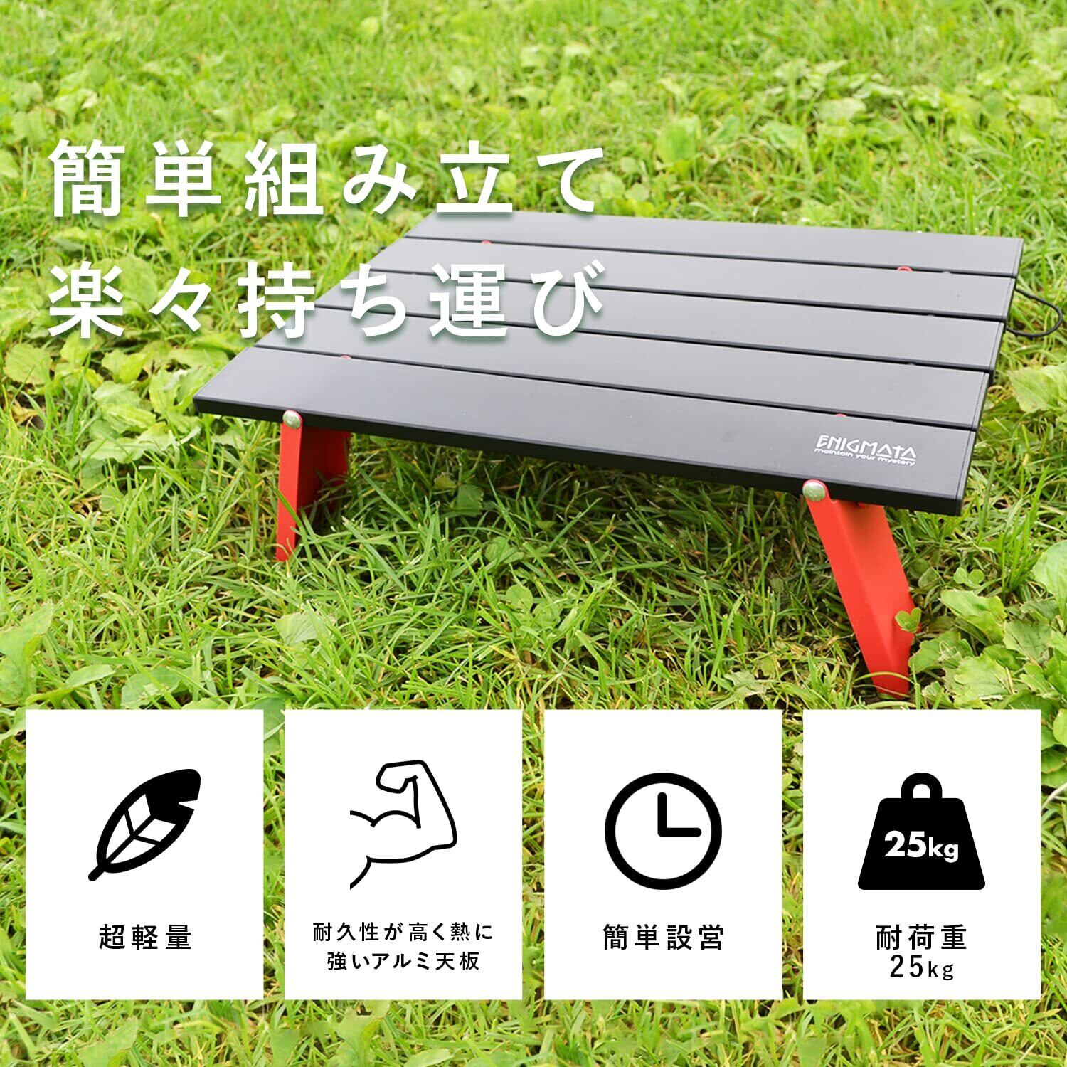 ENIGMATA アウトドア テーブル キャンプ用品 ミニテーブル アルミ製 ピクニックテーブル 折りたたみ式 コンパクト 超軽量 耐荷重25kg バーベキュー 焚き火 ハイキング 収納袋付き
