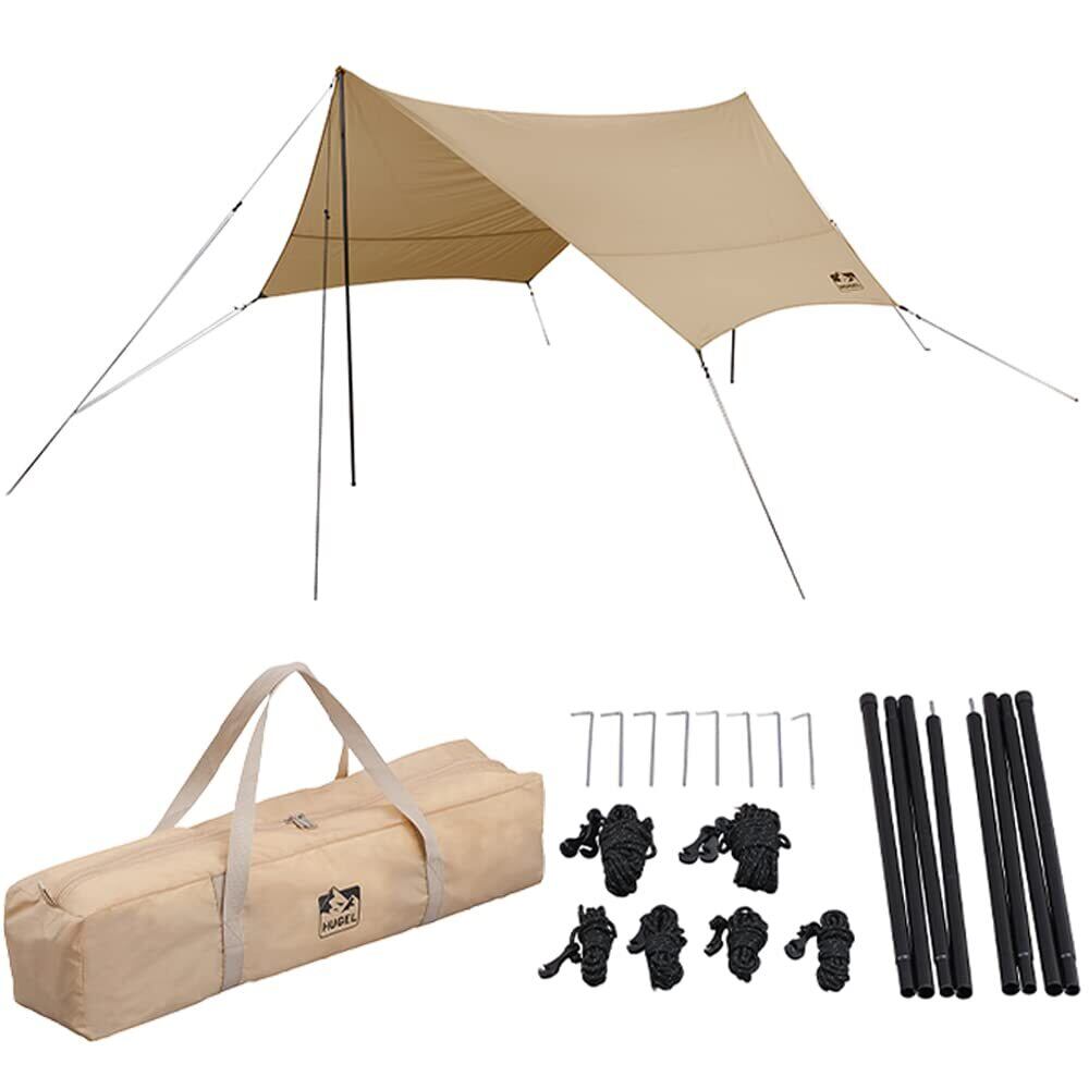 付属品:タープ、ポール×2本、センターロープ×2本、サイドロープ×4本、ペグ×8本、キャリーバッグ(収納袋)