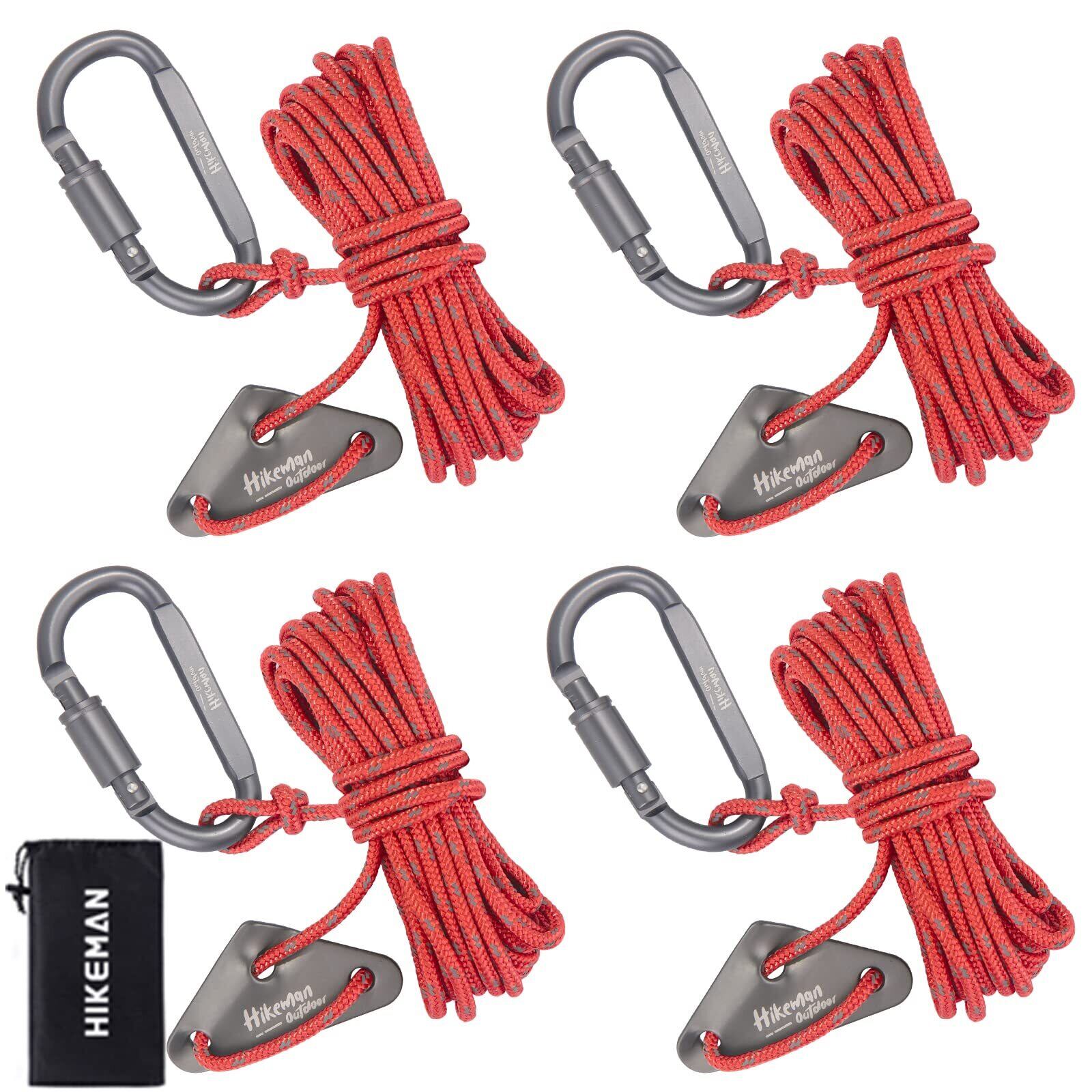 【2022最新】テントロープ パラコード カラビナ付き 調節可能 タープロープ ガイライン 張り綱 反射材入り 太さ 4mm 長さ4M 自在金具 4個セット キャンプ用品 収納袋 耐荷重350kg 収納袋付き(レッド) | paghag