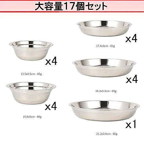 RSプロダクト 【超大量! 17枚! 】アウトドア 皿セット ボウル プレート ステンレス 食器 お皿 多用途 耐久性 ファミリー キャンプ ピクニック バーベキュー BBQ アウトドア用品 キャンプ用品 バーベキュー用品