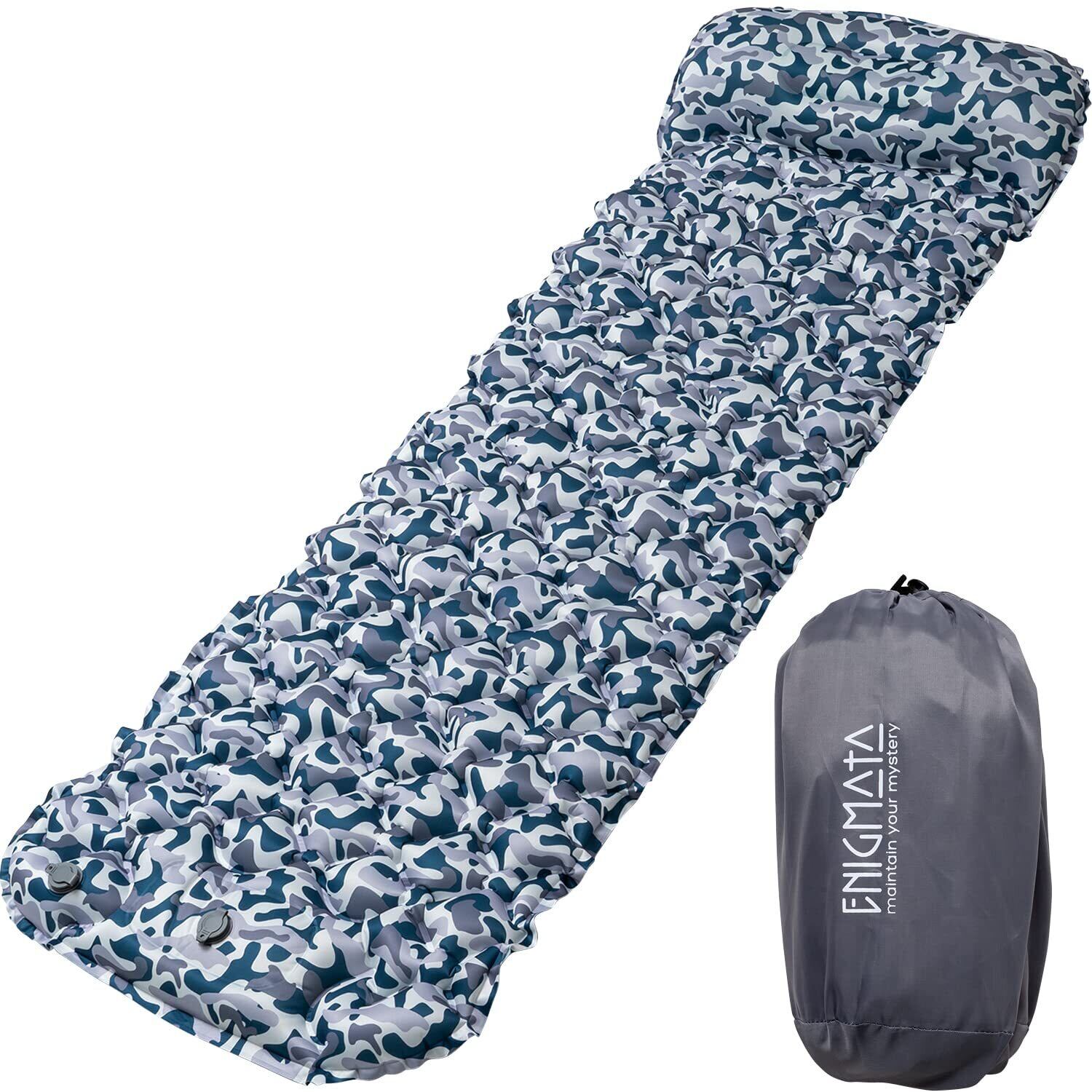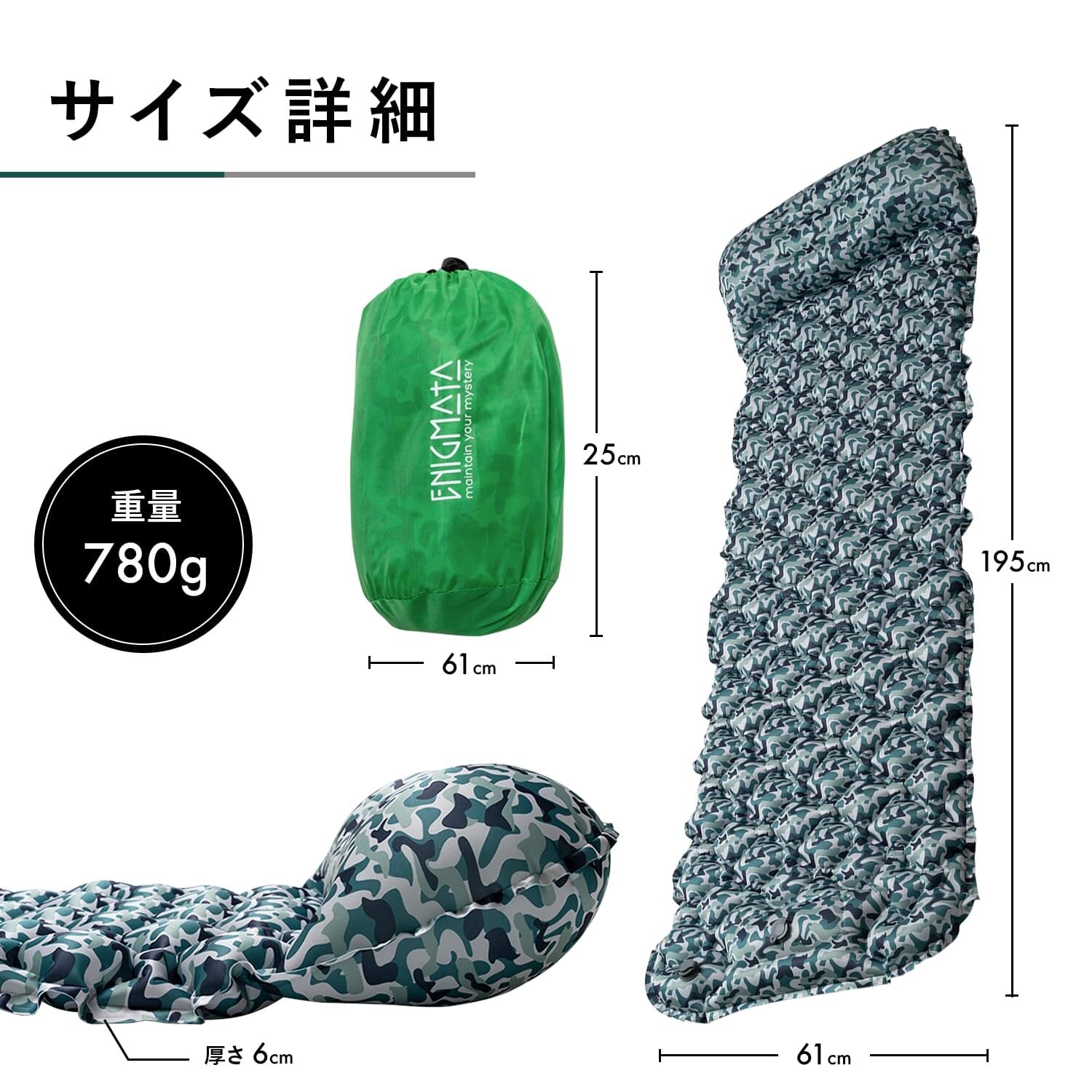 ENIGMATA エアーマット キャンプマット アウトドア 車中泊 マット キャンプ用品 軽量 780g 足踏み式 枕付き コンパクト 携帯便利 防水 防潮 防災用 登山 お花見 ピクニック 海水浴 収納袋付き