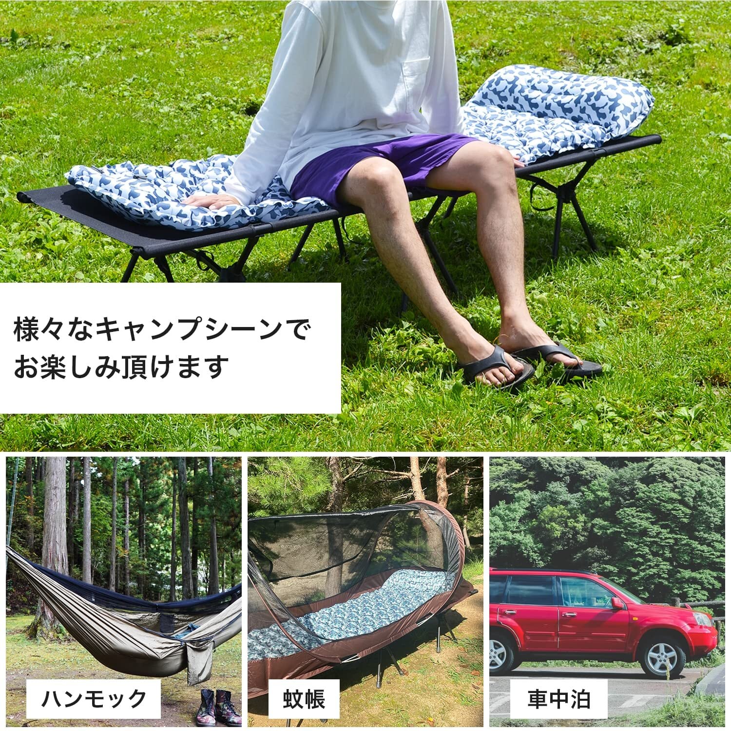 ❀【 枕一体型で抜群の寝心地を 】厚みのあるエアーマットが地面の凹凸や湿気、熱気などを遮断します。また、弾力性のある柔らかな枕が一体型となっており、屋外や車内でも快適な睡眠をサポートします。荷物の多いアウトドア時に枕を携帯する必要がなく小さく折りたためるので、どこでもぐっすりと眠ることができます。