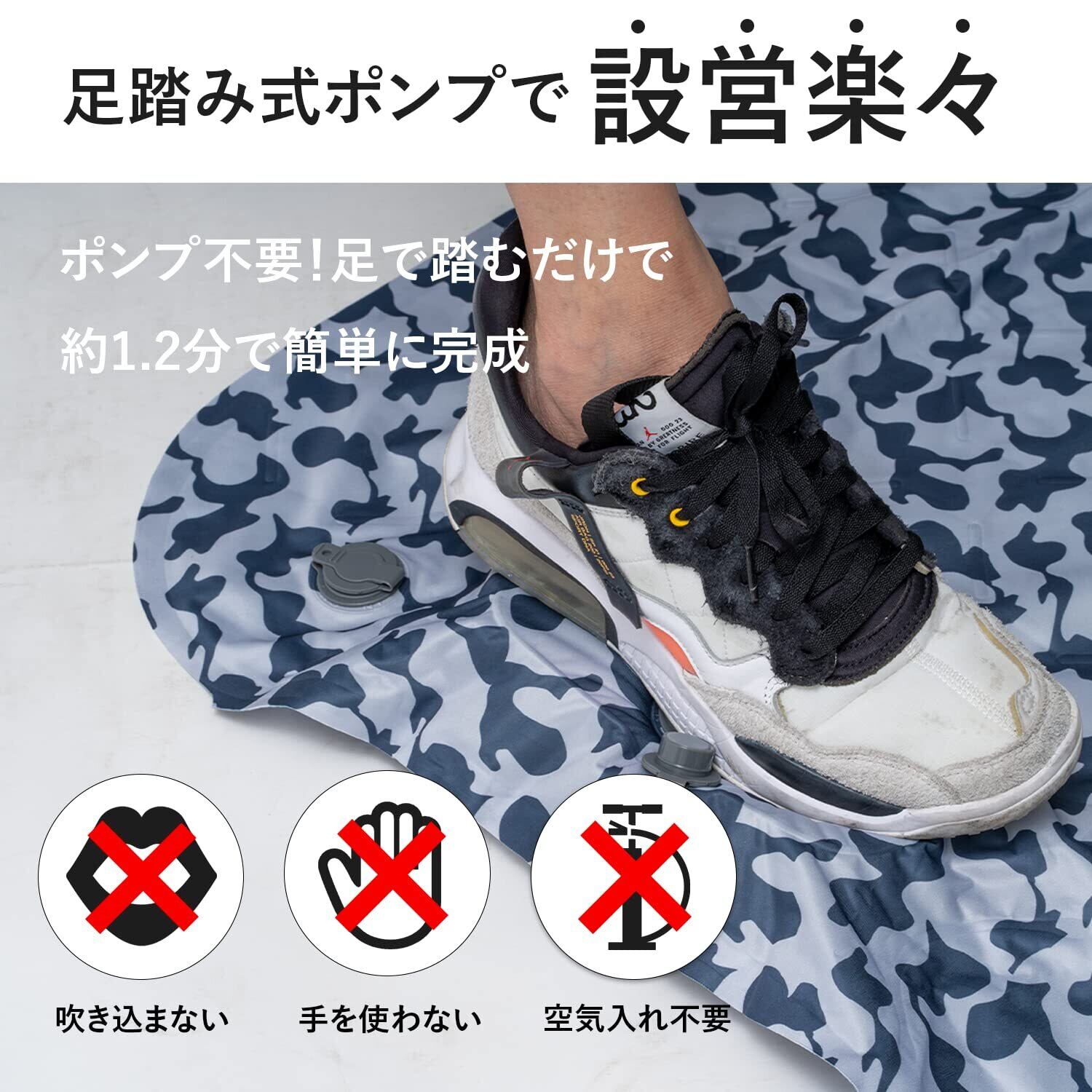 ❀【 足踏み式で組立簡単&空気入れ不要 】足部にあるバルブを踏むだけで簡単に空気を充填することが可能です。電動エアポンプや空気入れを準備したり、口から空気を吹き込む必要もありません。女性や子供でも簡単に1~2分でエアーマットを組み立てることができます。
